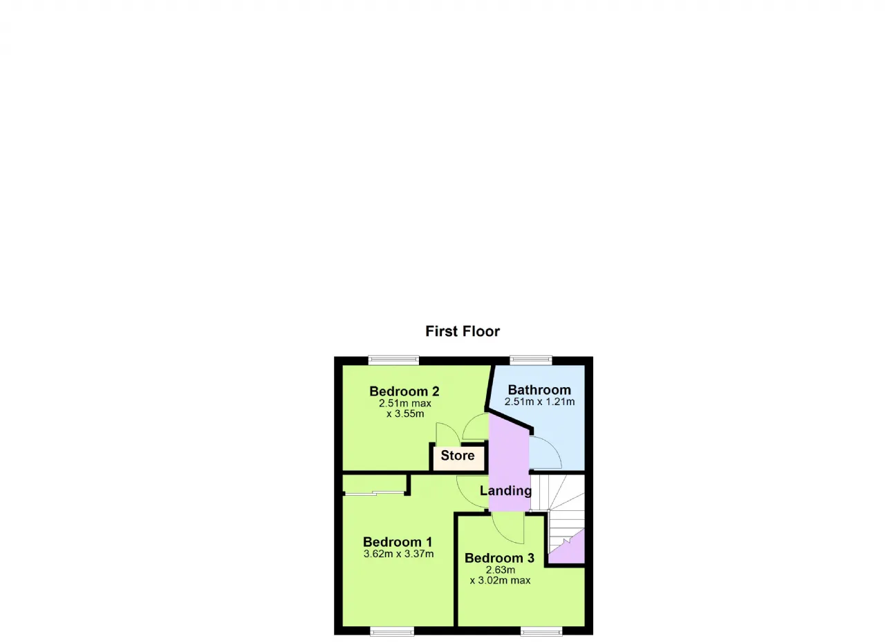 Bedroom 3 2.63m x 3.02m (front) with built-in wardrobe / storage cupboard