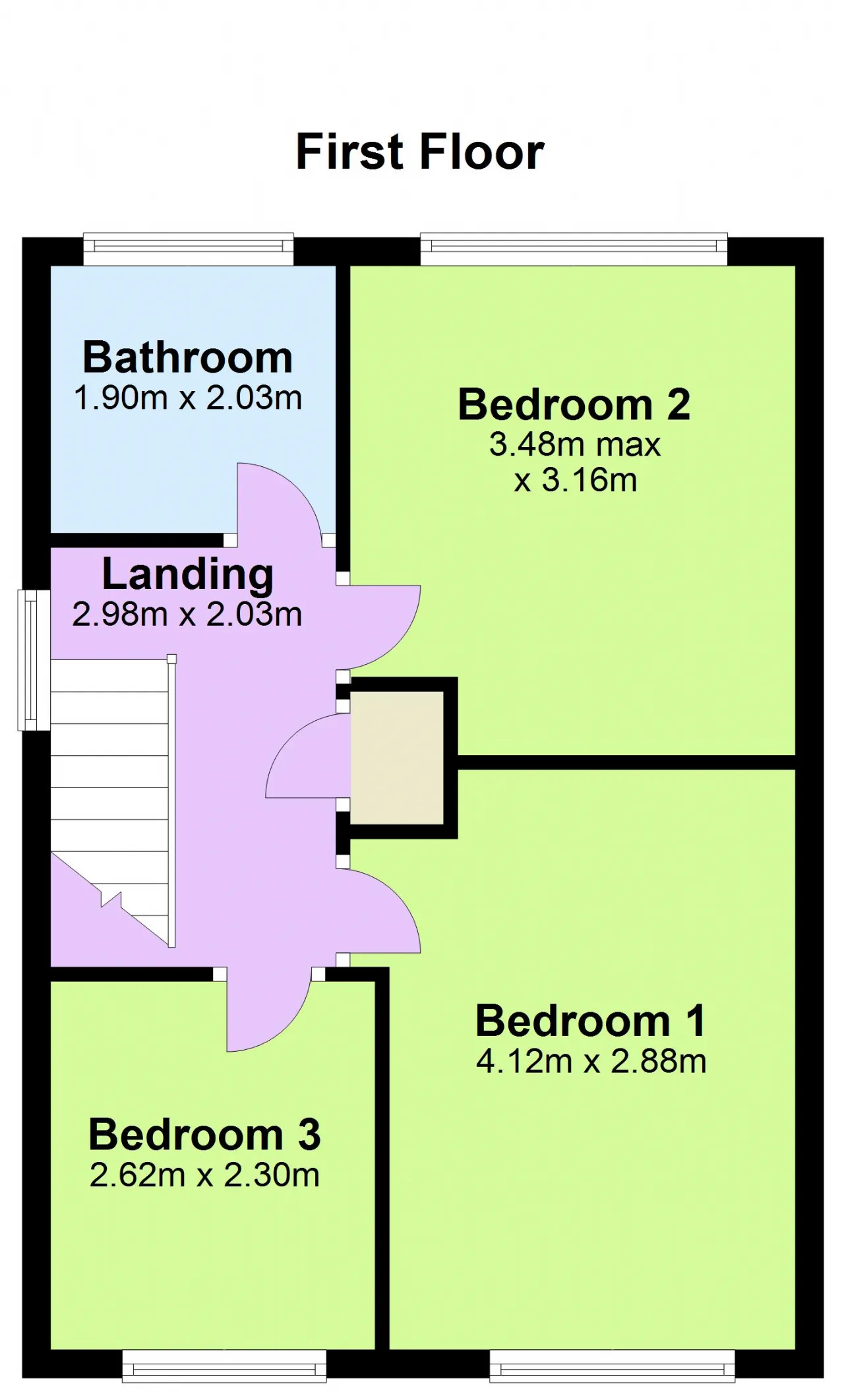 Bedroom 3 2.62m x 2.30m Overlooking garden to front.