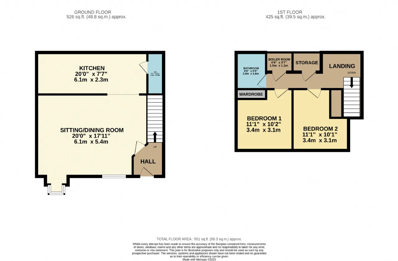 From the entrance hallway, the living room is located immediately to your left, with a bay window and opening into a separate kitchen area which is plumbed for all modern conveniences. Downstairs is completed with a guest WC just off the kitchen/Dining area.