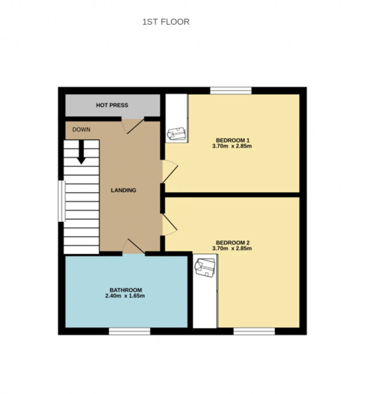 Bedroom 2 3.7m x 2.85m Double to front, built-in-wardrobe, carpet, additional built-in panelled presses - currently used as office space