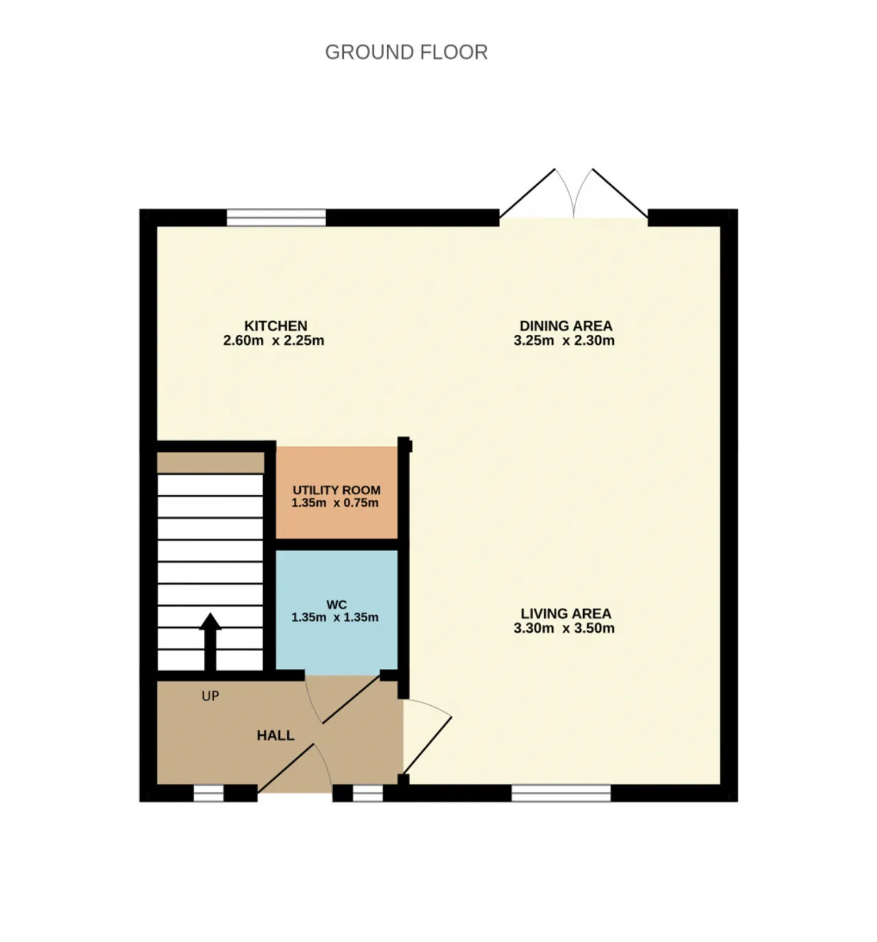 Accommodation comprises entrance hall with guest wc, open plan living/dining and kitchen areas with French doors to the large back garden which is approximately 38 feet long and 30 feet wide. Upstairs there are two double bedrooms, main bathroom and a storage area. All beautifully presented, this home has its own private driveway adjacent to the house.
