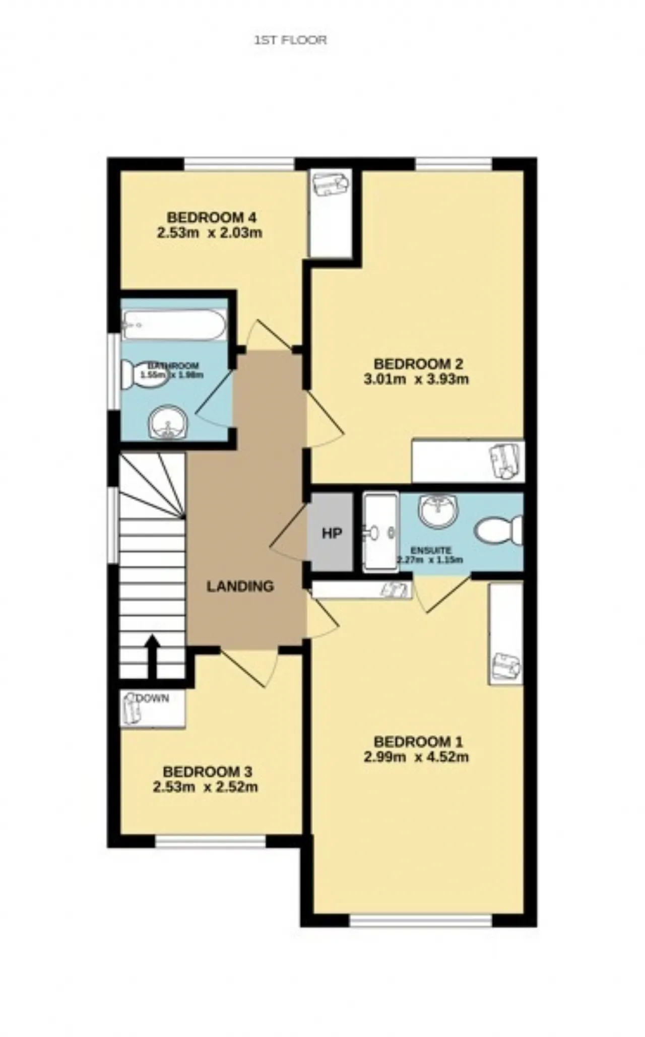 Bedroom 1 4.52 x 2.99 A great sized double room to the front with wooden flooring, built in wardrobes and an ensuite.