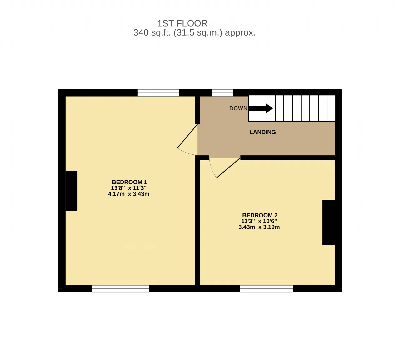 Bedroom 1 4.17m x 3.37m Double bedroom to the front of the property spanning the full width of the property with carpet flooring