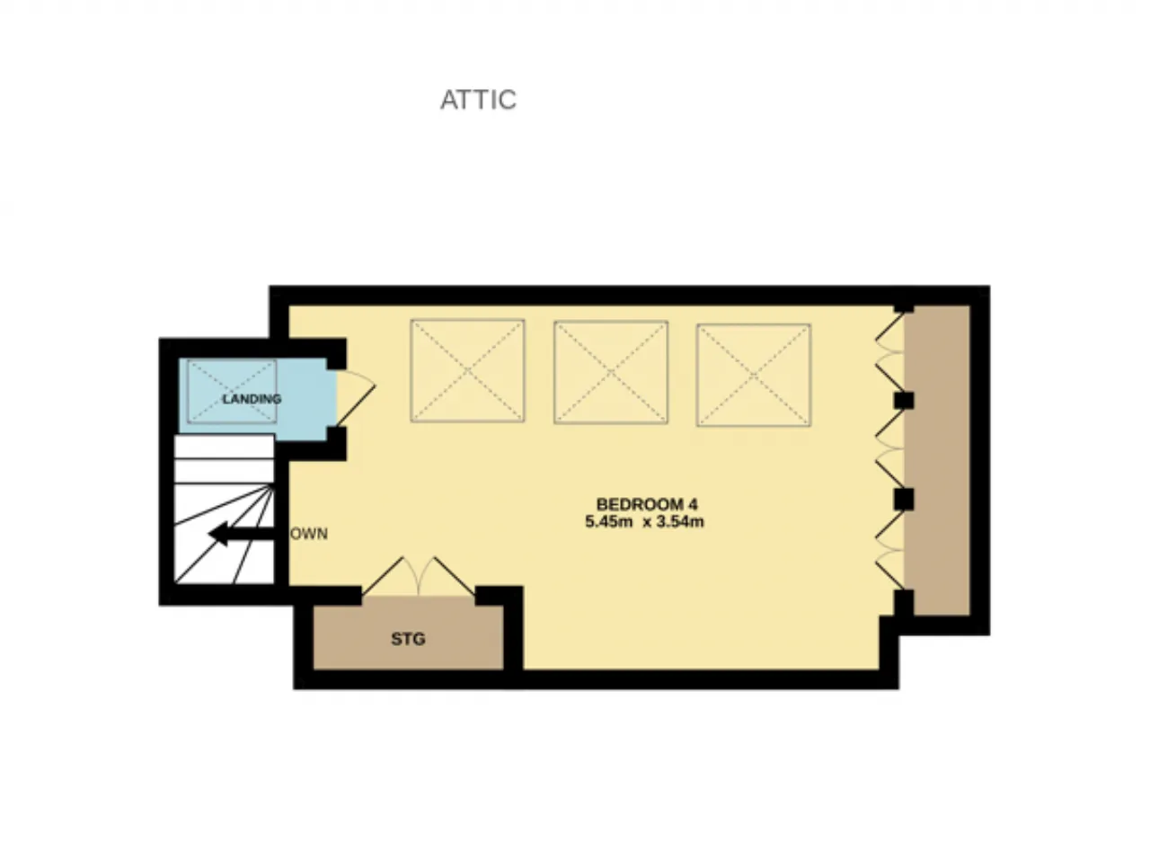 Attic Room / 4th Bedroom 5.45m x 3.54m Large room with laminate woodcarpet flooring, three Veluxz wWindows with fitted wardrobes and great storage in the eaves.