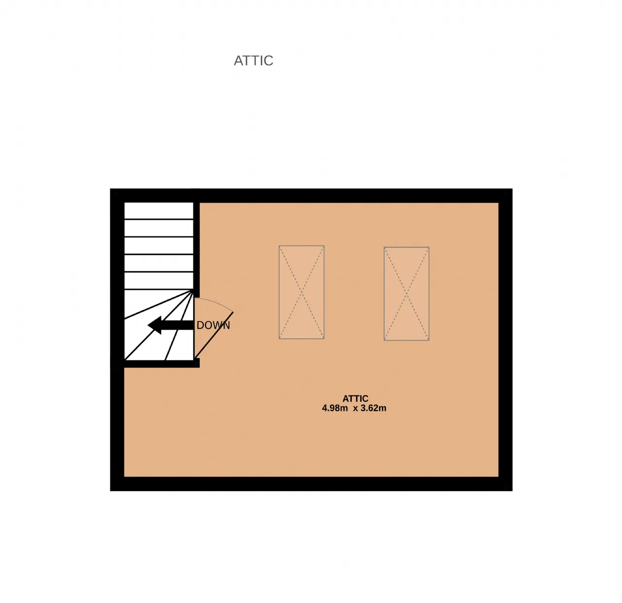 Attic 4.98m x 3.62m Bright, converted attic with carpet flooring.