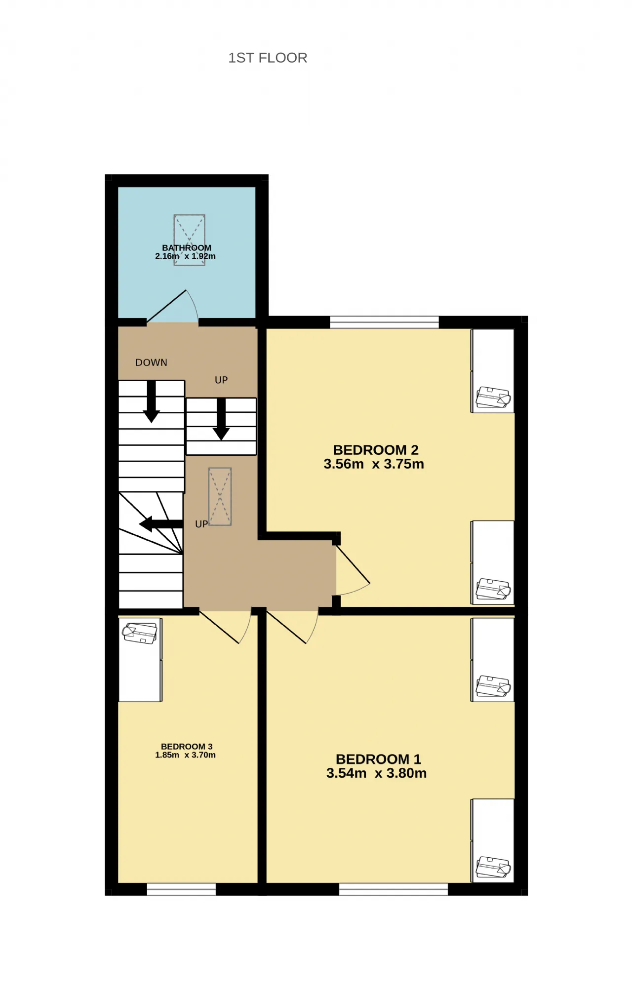Bedroom 3 1.85m x 3.70m Single bedroom with carpet flooring.