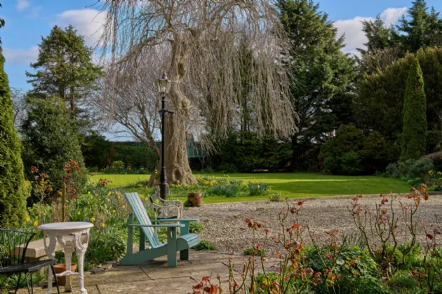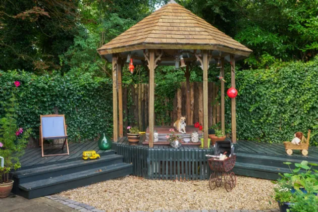 Nestled on approximately 0.6 acres, this very private garden offers a tranquil retreat, surrounded by lush greenery. A gravel driveway provides generous parking space, leading to the entrance of the property. The garden is a vibrant tapestry of plants, shrubs, and mature trees and water feature creating a serene setting. A hot tub adds a touch of luxury, perfect for relaxation. The spacious grounds are ideal for children to play and explore, making this outdoor space both safe and family-friendly. Whether you're entertaining or enjoying quiet moments, this garden offers both beauty and practicality.