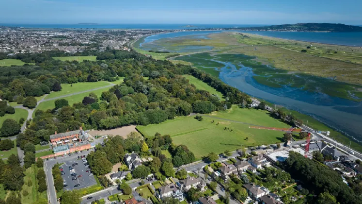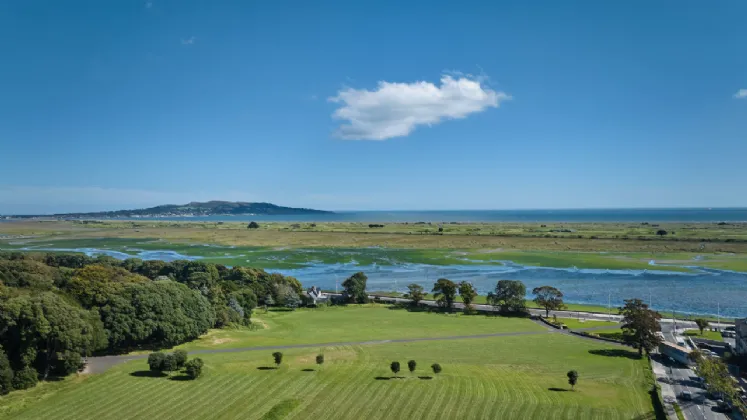 Clontarf is a coastal suburb on the northside of Dublin. It has a range of commercial facilities mainly centred on Vernon Avenue. Clontarf's most notable amenity is its seafront, with a promenade running continuously from Alfie Byrne Road to the wooden bridge at Dollymount. As well as extensive walks and green areas, St Anne’s Park situated between Clontarf and Raheny is the second largest municipal park in Dublin, is part of a former 202 hectares (500 acres) estate assembled by members of the Guinness family. Features include an artificial pond and a number of follies, a fine collection of trees, a playground, parklands walks and recreational facilities including golf.and tennis. Clontarf contains numerous sporting facilities, such as GAA, Rugby, Cricket, Tennis and Sailing. The largest municipal park is nearby (North) Bull Island, also shared between Clontarf and Raheny. North Bull Island is an island located in Dublin Bay, about 5 km long and 800 m wide, lying roughly parallel to the shore off Clontarf (including Dollymount), Raheny, Kilbarrack, and facing Sutton. It has been named by UNESCO as a biosphere reserve. It is the only biosphere reserve in a capital city in the world. The island, with a sandy beach known as Dollymount Strand running its entire length, the island also hosts St Anne’s and Royal Dublin golf clubs.
