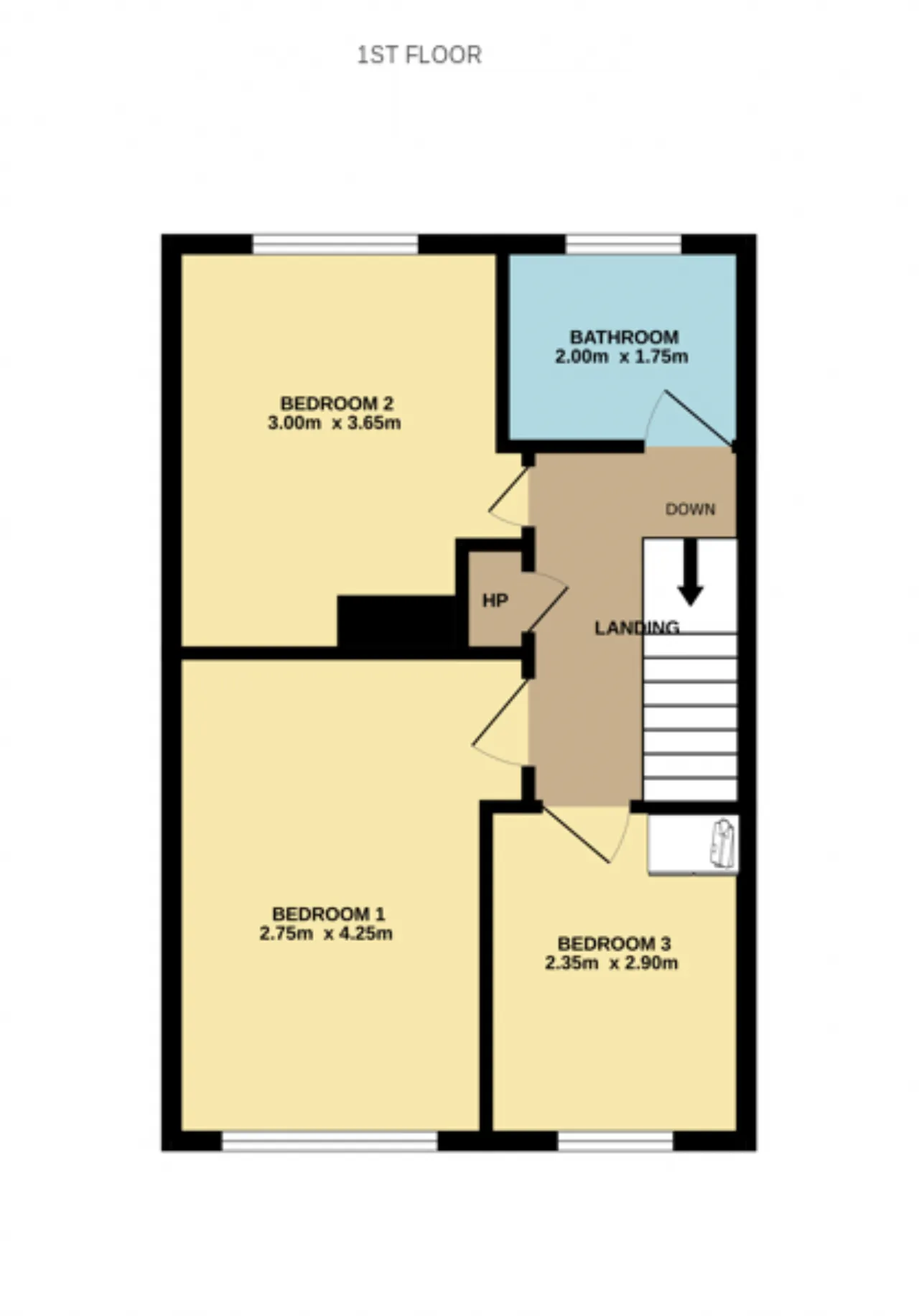 Bedroom 1 (front) 2.75m x 4.25m Fitted wardrobes, laminated timber effect floor, tv point.