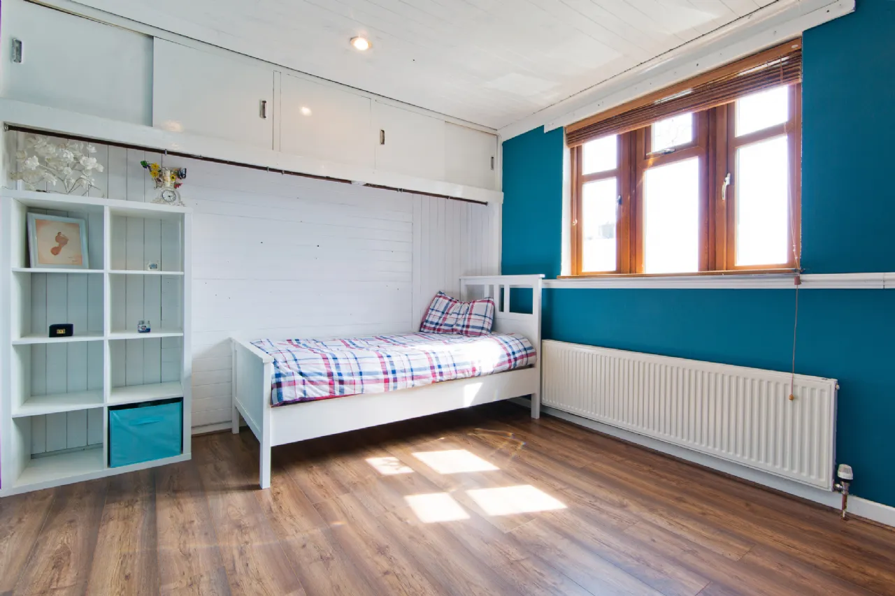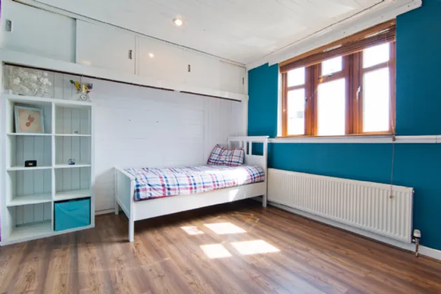 Bedroom 1 is a generously sized double bedroom with a front-facing window, built in storage and laminate flooring . Bedroom 2 mirrors this spaciousness of the front wall mounted radiator, built in storage and laminate flooring. Bedroom 3 again is sized double bedroom with window to rear aspect overlooking the garden, built in wardrobes and laminate flooring. The family bathroom is fitted out to an extremely high standard with an Opaque rear-facing window, a corner shower unit, with power shower, glass shower screen, a WC, a feature vanity unit, inset sink with mixer tap and floor-to-ceiling tiling.