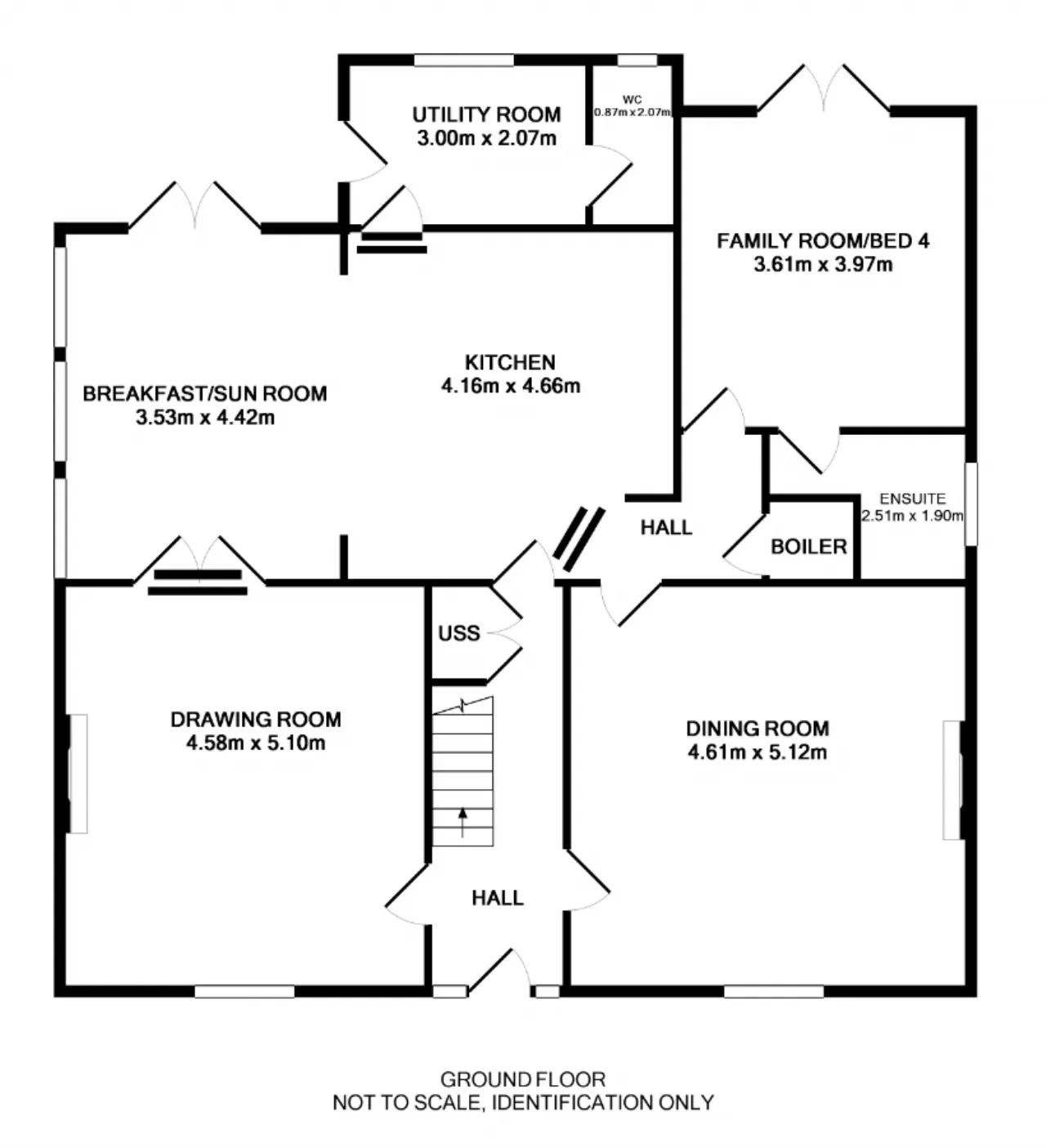 At ground floor the accommodation briefly comprises of welcoming entrance hallway, drawing room and dining room both with feature marble fireplaces, a bespoke hand painted fitted kitchen with breakfast area/sun room, a spacious laundry room, guest wc and an en-suite bedroom which is currently used as a family room.