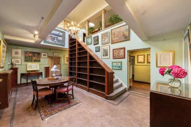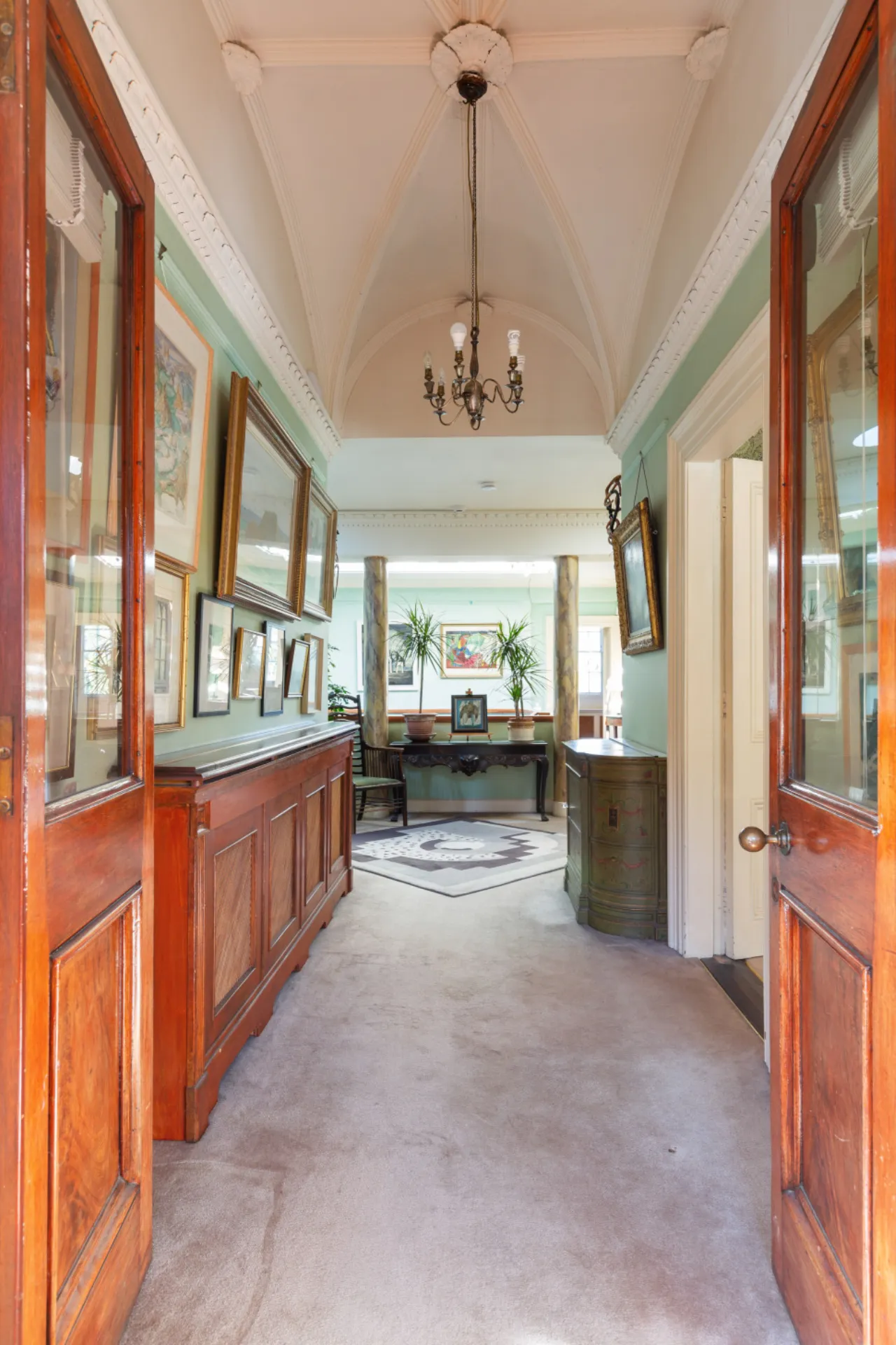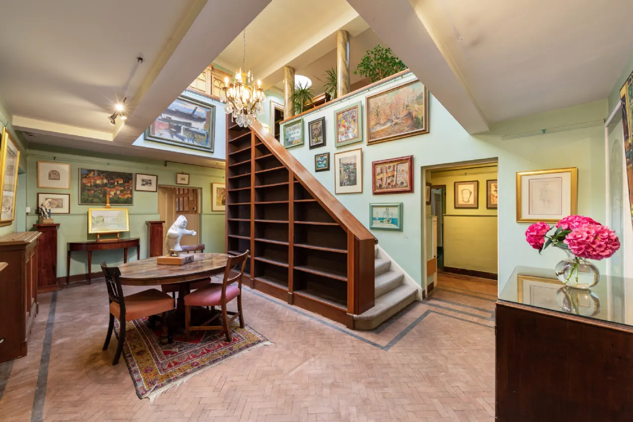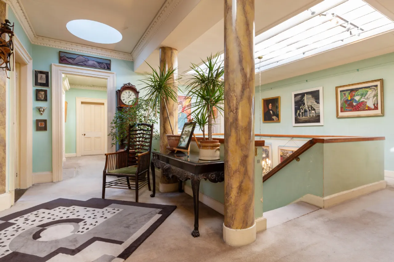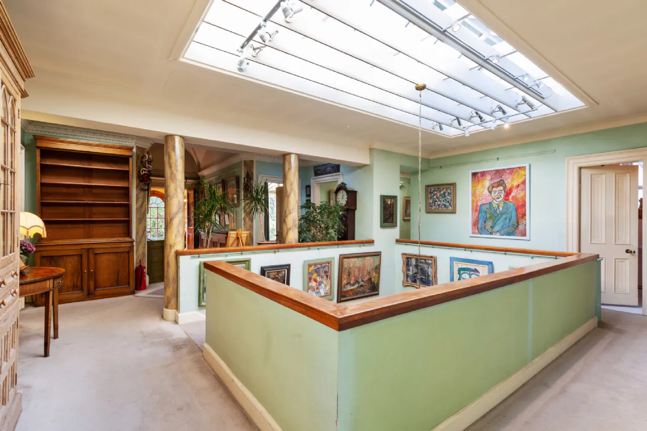 The spacious inner hallway leads to the grand gallery-style central atrium, from which the main reception rooms and bedrooms flow. This central hallway is a perfect showcase for a beautiful collection of books and artwork, adding to the property’s distinct character.