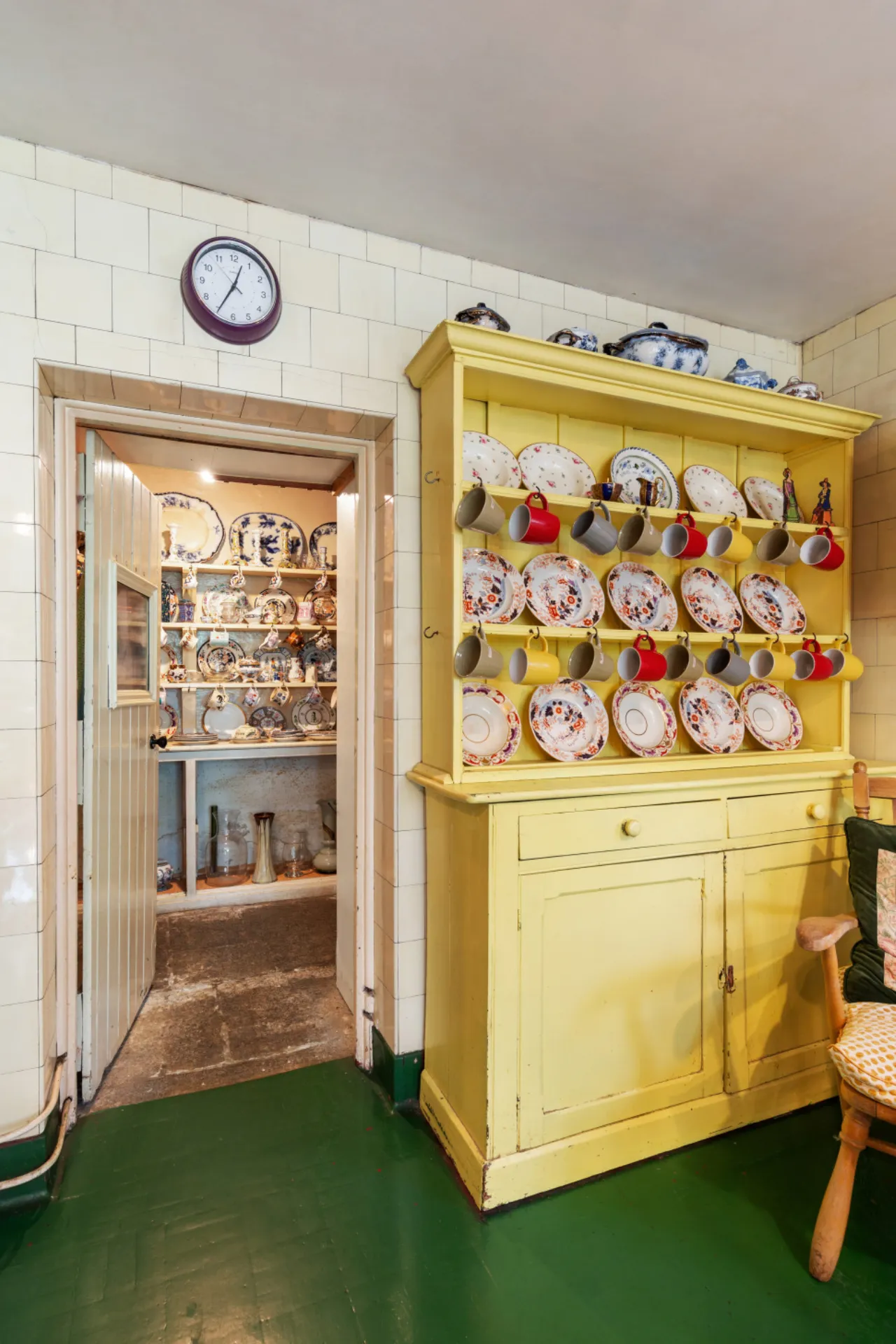 Freezer room/utility with original flagstone floors, double Belfast sinks, plumbed for washing machine. Generous storage