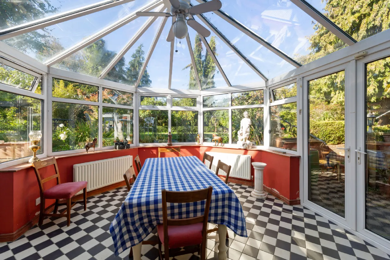 The beautifully landscaped grounds feature a gravelled forecourt and lush gardens that evoke an old-world charm. A formal rose garden lies to the rear, alongside a greenhouse. The back area of the garden presents an opportunity for future development; the vendors previously secured planning permission for a separate entrance and a single-storey, two-bedroom bungalow, which, although lapsed, could potentially be renewed, subject to necessary approvals.