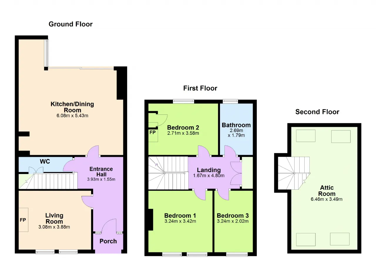 The accommodation extends to 119sq.m (1,280sq.ft approx.) with the original hall door with stained glass side panels leading into a welcoming entrance hall which sets the tone for the quality of the accommodation to follow. A light filled living room to the front with two windows has lovely period features and a cast iron fireplace with open fire creates a cosy focal point to the room whilst to the rear, a large open plan kitchen / dining room with bespoke cabinets overlooks the courtyard garden. A guest wc completes the accommodation at this level. Upstairs, there are three bedrooms and a well-appointed family bathroom. The large attic has also been converted providing additional useful accommodation.