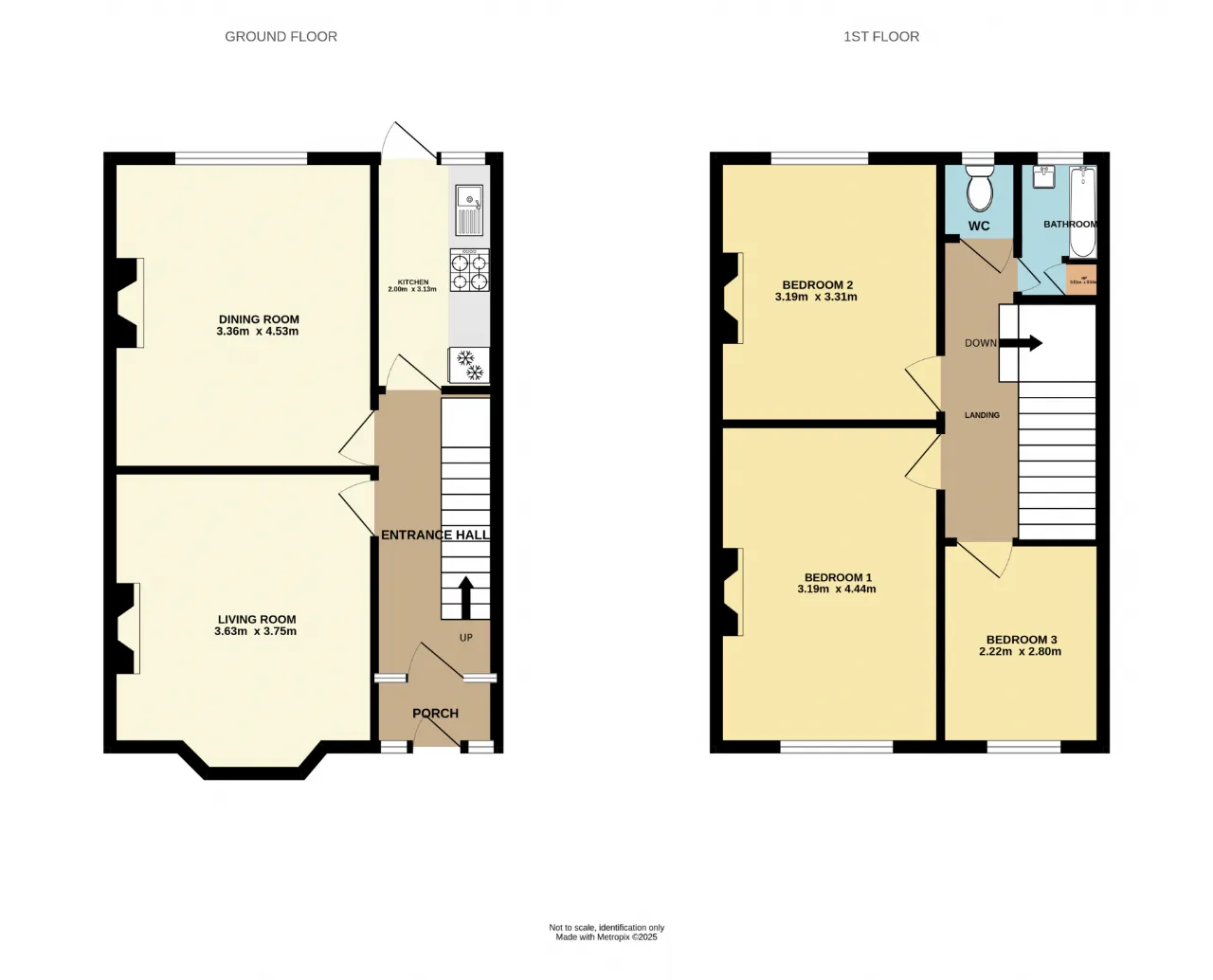 Bedroom 1 4.44m x 3.19m Sizeable double bedroom with window to front aspect, feature fireplace, wall mounted radiator and carpeted floor coverings.