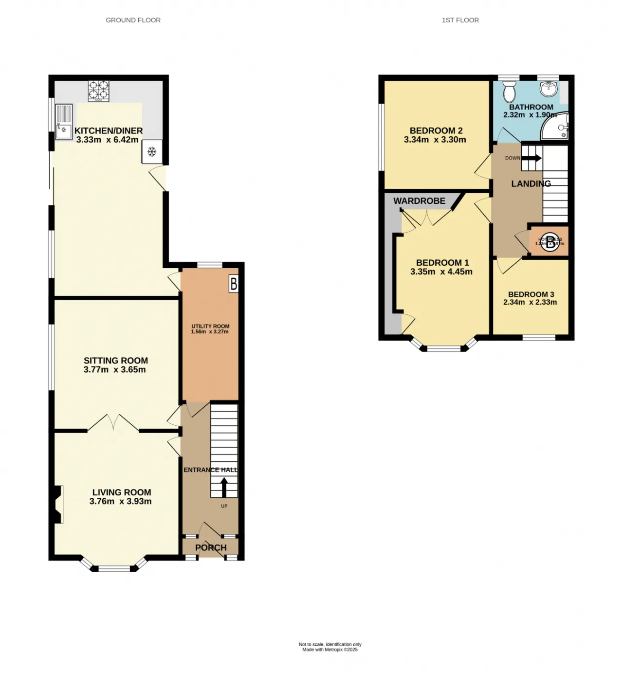 Upon entering this charming property, you're greeted by a light-filled and spacious entrance hall with stairs to the first-floor landing, understairs storage and opening to both the main living room, sitting room and utility room. The spacious living room has a front facing bay window, feature fireplace, timber flooring and double doors opening to the sitting room. The sitting room is of good size and features a window to the side aspect overlooking the enclosed rear garden, decorative coving and hardwood flooring.