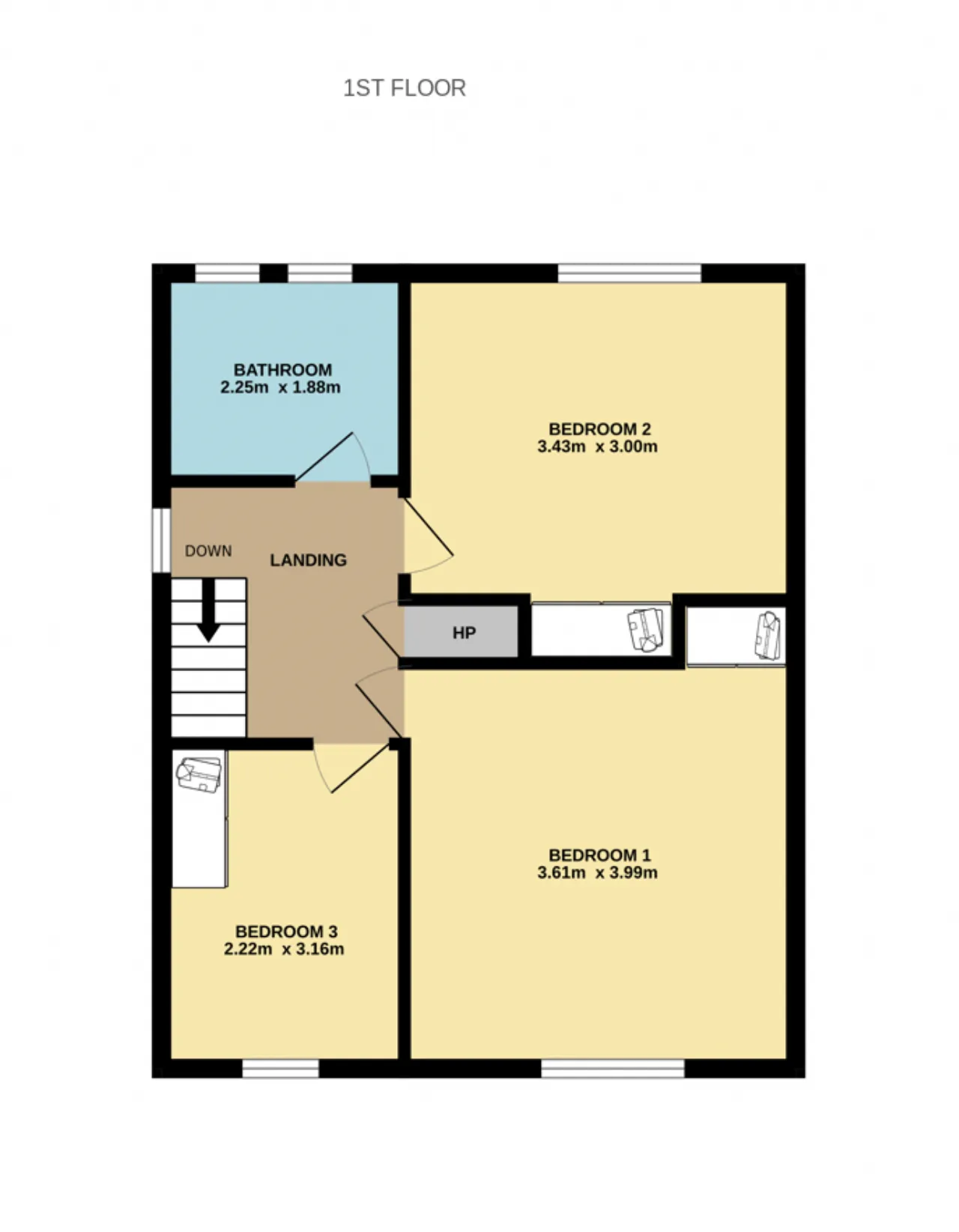 Bedroom 3 2.22m x 3.16m Comfortable single bedroom to the rear with wooden flooring and coving.