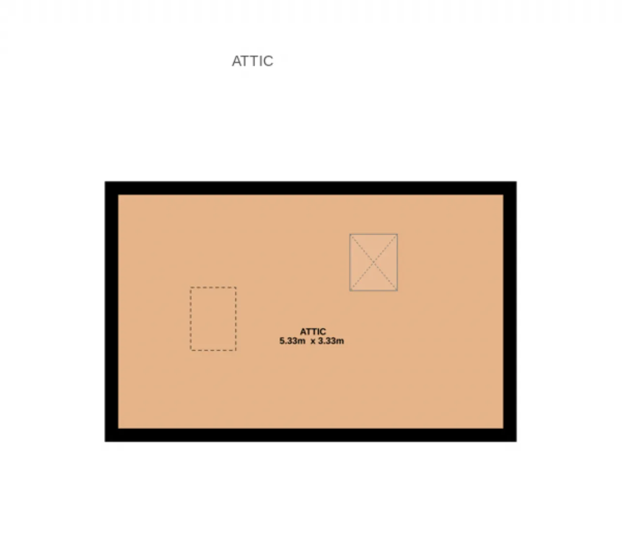 Attic 5.33m x 3.33m Converted, floored attic space with skylight and eaves storage, accessed via a pull-down ladder.