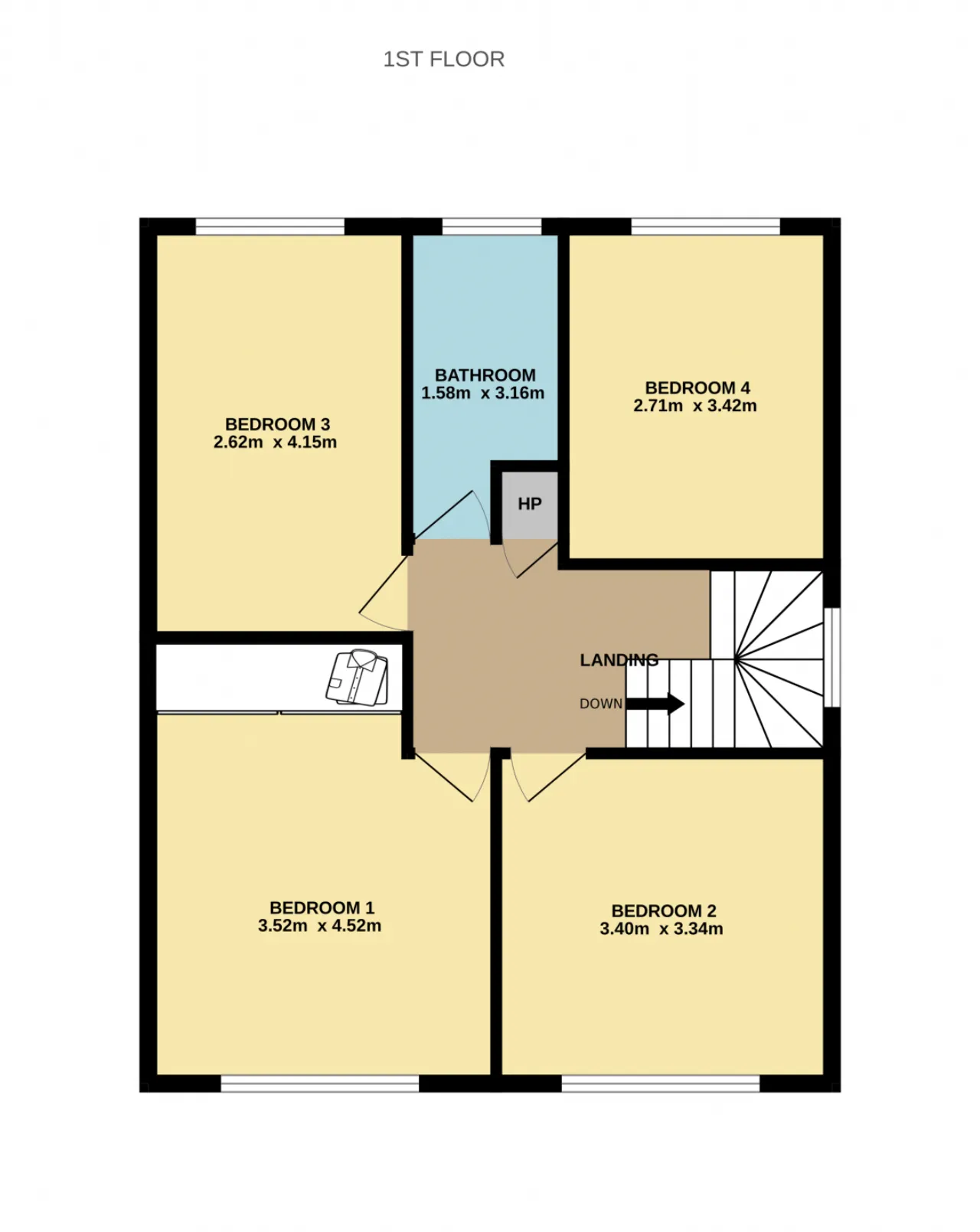 Bedroom 1 4.56m x 3.58m Double bedroom to the front of the property with carpet flooring and built in wardrobe.