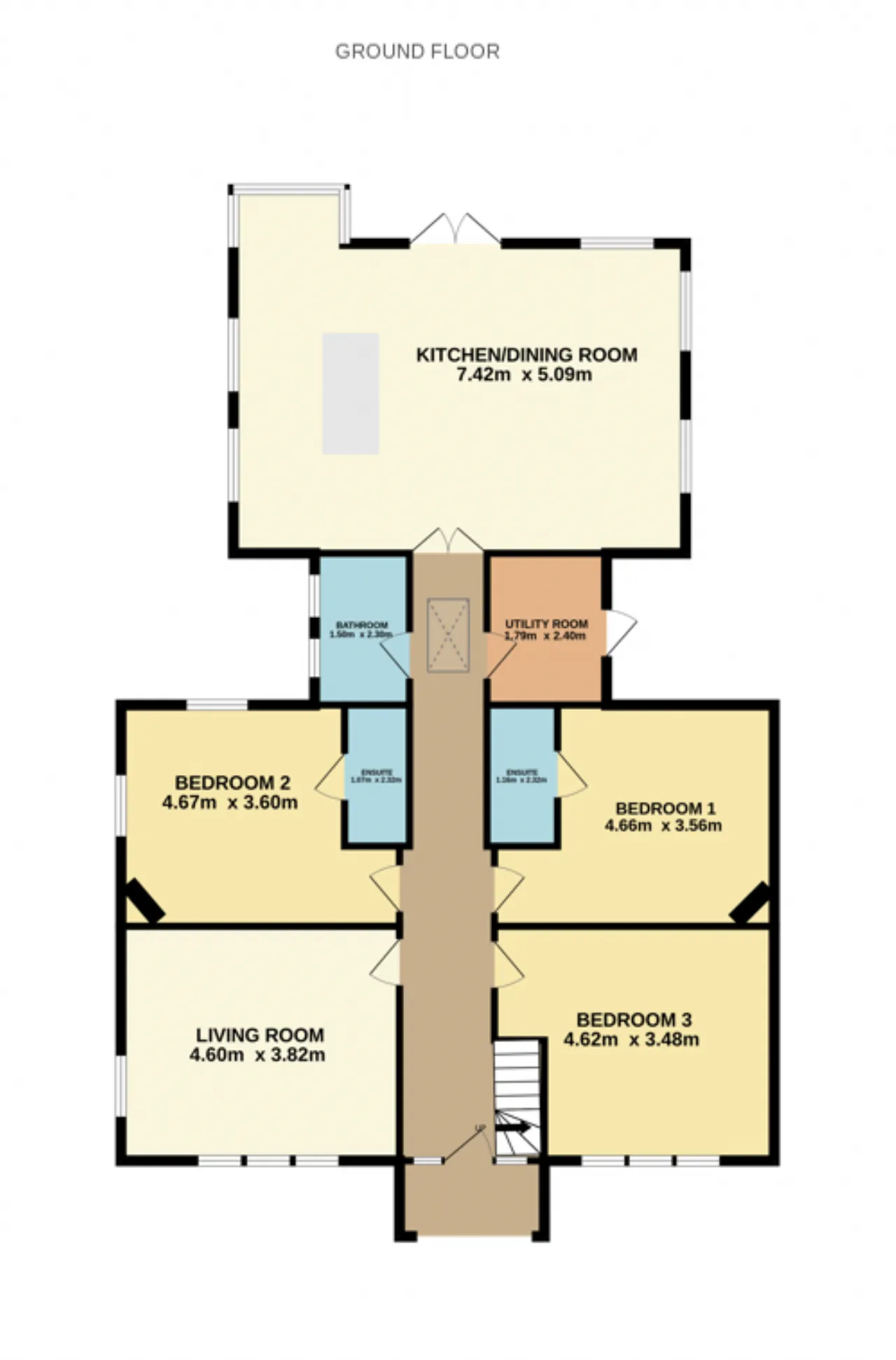 Utility room: 1.79m x 2.40m with additional storage and is plumbed for a washing machine and dryer.