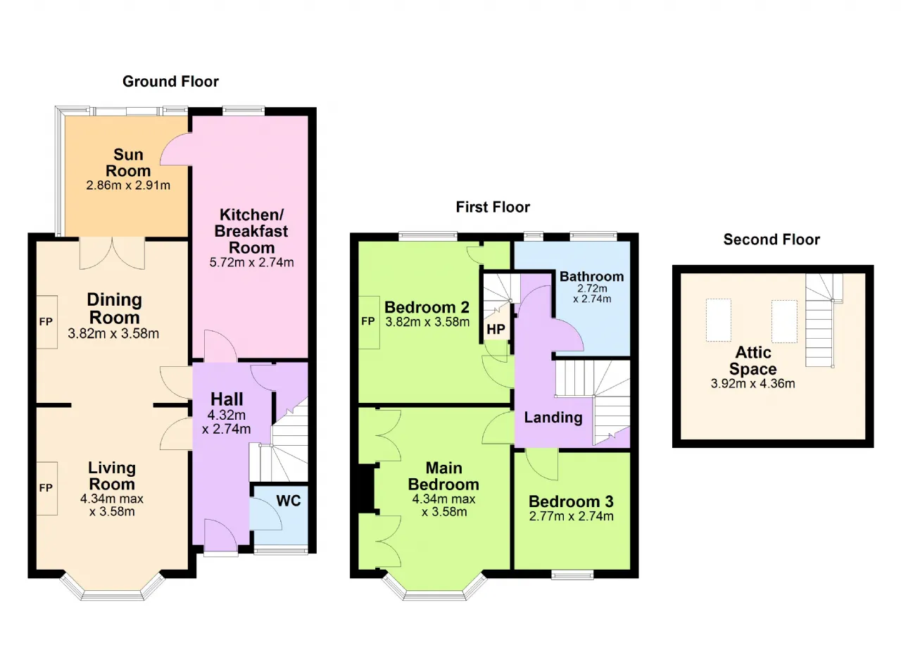 The home offers a well-balanced mix of living and sleeping accommodation, designed for comfort and practicality. The ground floor comprises a welcoming entrance hall, two spacious reception rooms, a fitted kitchen, a bright conservatory, and a guest WC. Upstairs, there are three bedrooms—two of which are large doubles—alongside a modern family bathroom. The attic has also been converted, providing additional living space and convenient access to eaves storage.