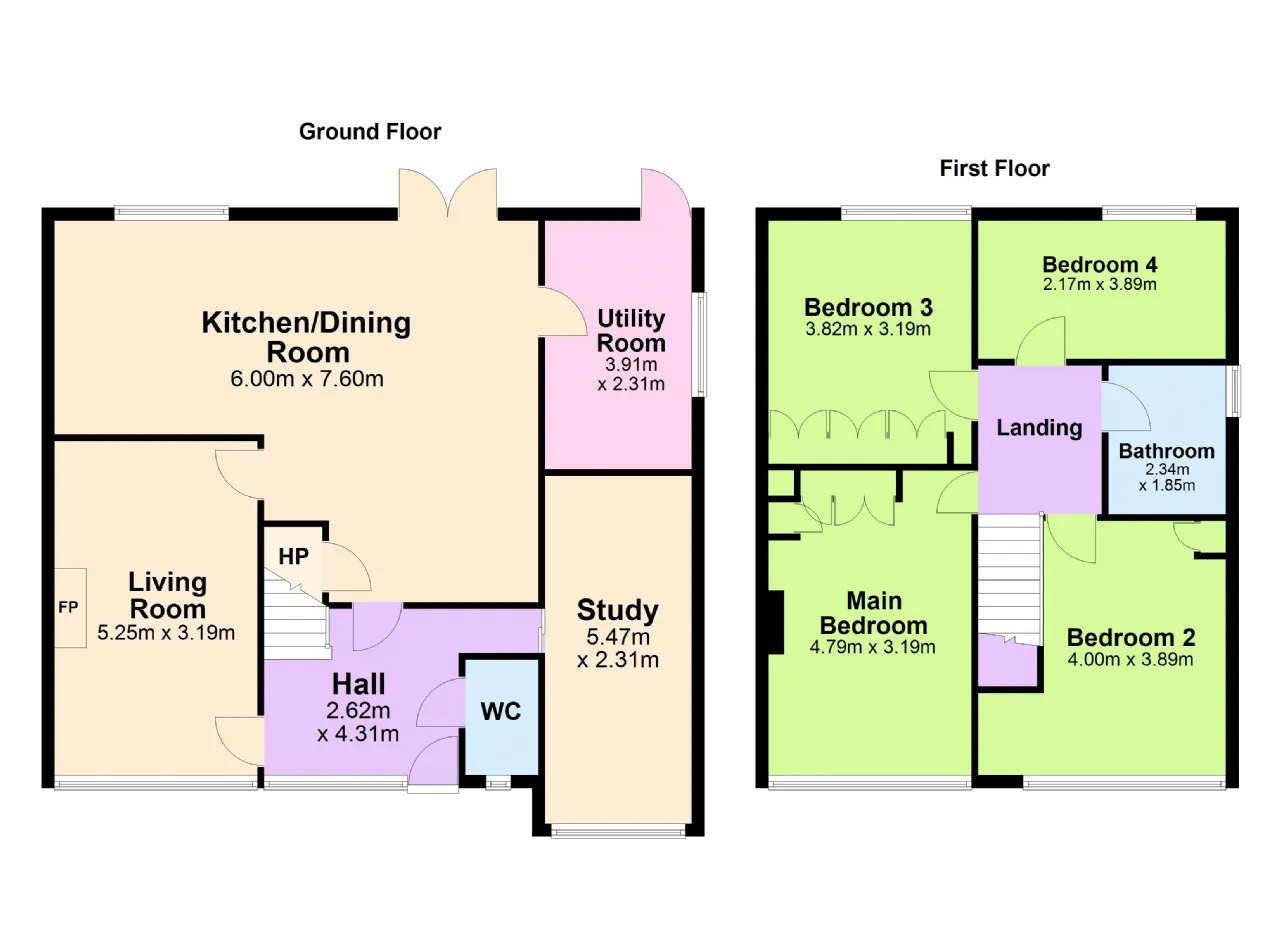 Main Bedroom: 4.79m x 3.19m bright double bedroom, fitted wardrobes, outlook to the front