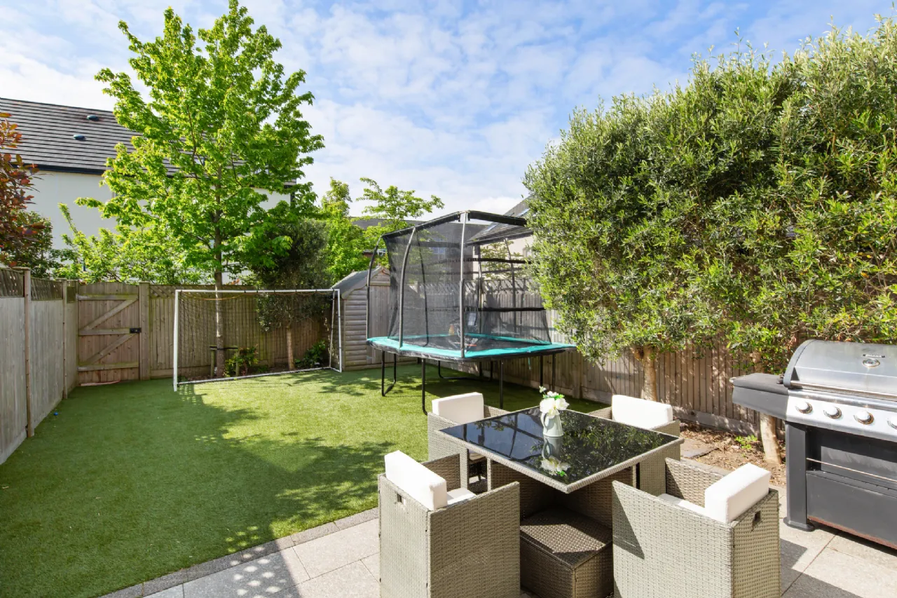 To the rear of the house, the south facing garden is laid out in a low maintenance manor with artificial grass and a patio area for outdoor living and dining. The garden also has a wooden shed and pedestrian rear access. To the front of the house there are two designated parking spaces with an EV charging point.