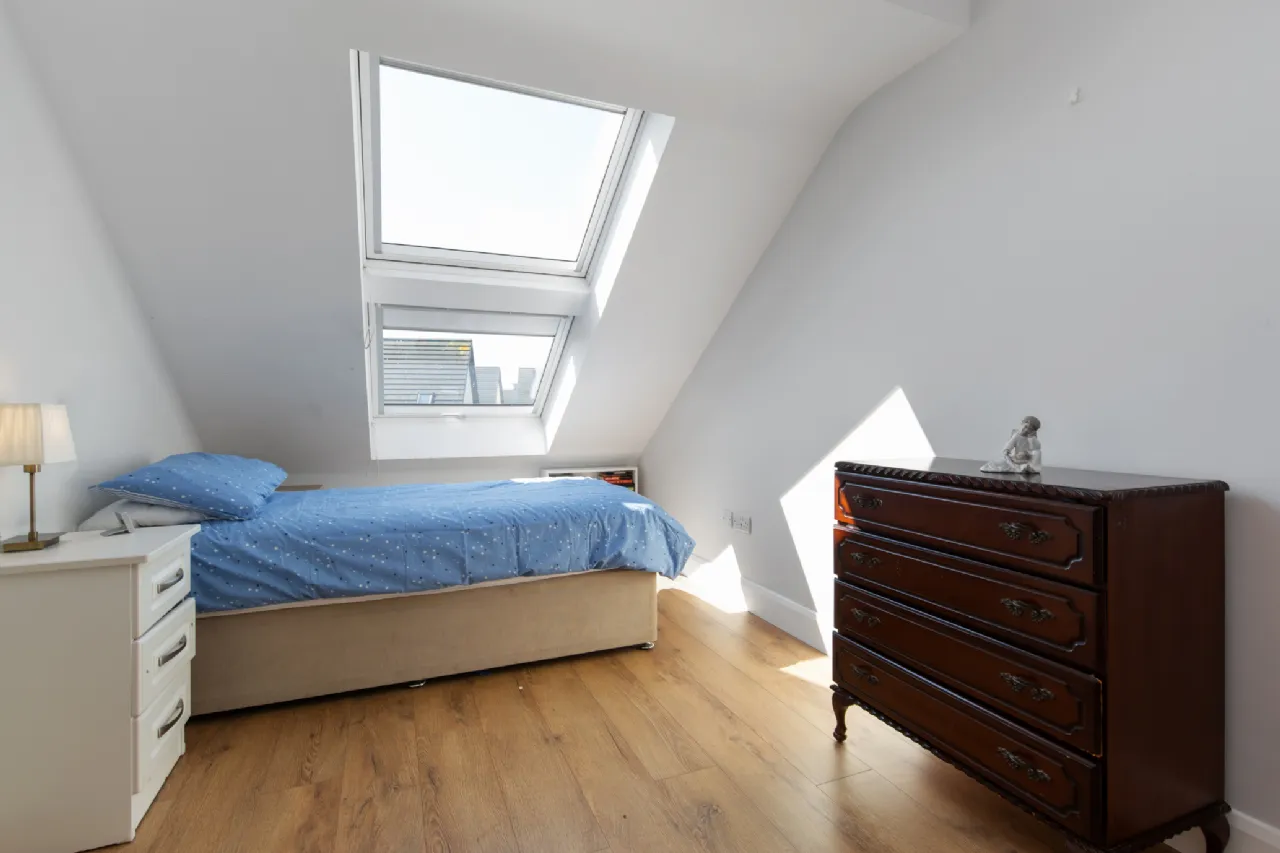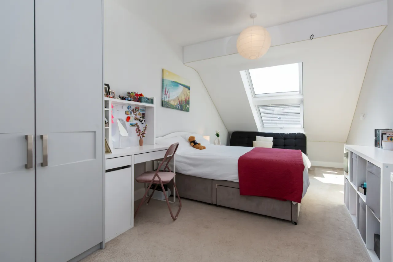 Bedroom 3 5.52m x 2.87m double bedroom, two large light bearing Velux windows, outlook to the rear, fitted wardrobes