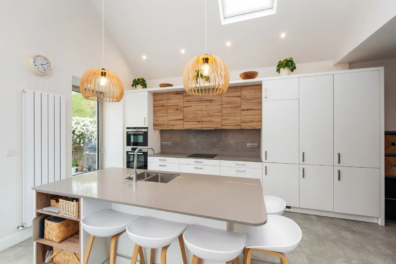 Once a simple five room bungalow, it has been now reimagined to provide all the elements required for modern family living. On the ground floor the sleeping quarters and bathroom are along the left-hand side and on the right hand side a spacious bay window living room can be opened up to or partition off, via pocket doors, from an incredible kitchen/living/dining. A superb heart of the house, with double height ceilings and extensive glazing creating a sense of living within your garden and ensuring full enjoyment of the outside all year around, this space will be great for family gatherings and entertainment. The property’s principal bedroom with en-suite was created by a masterfully designed large attic conversion.