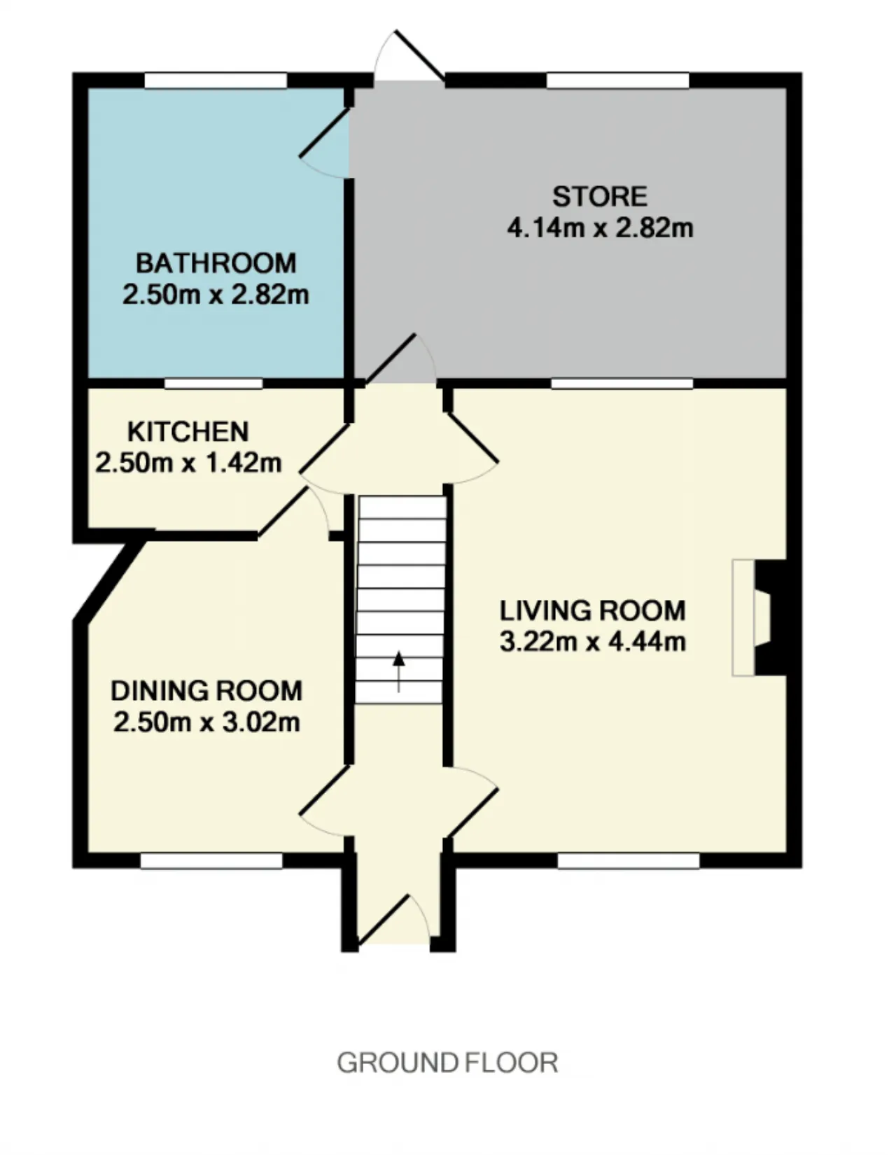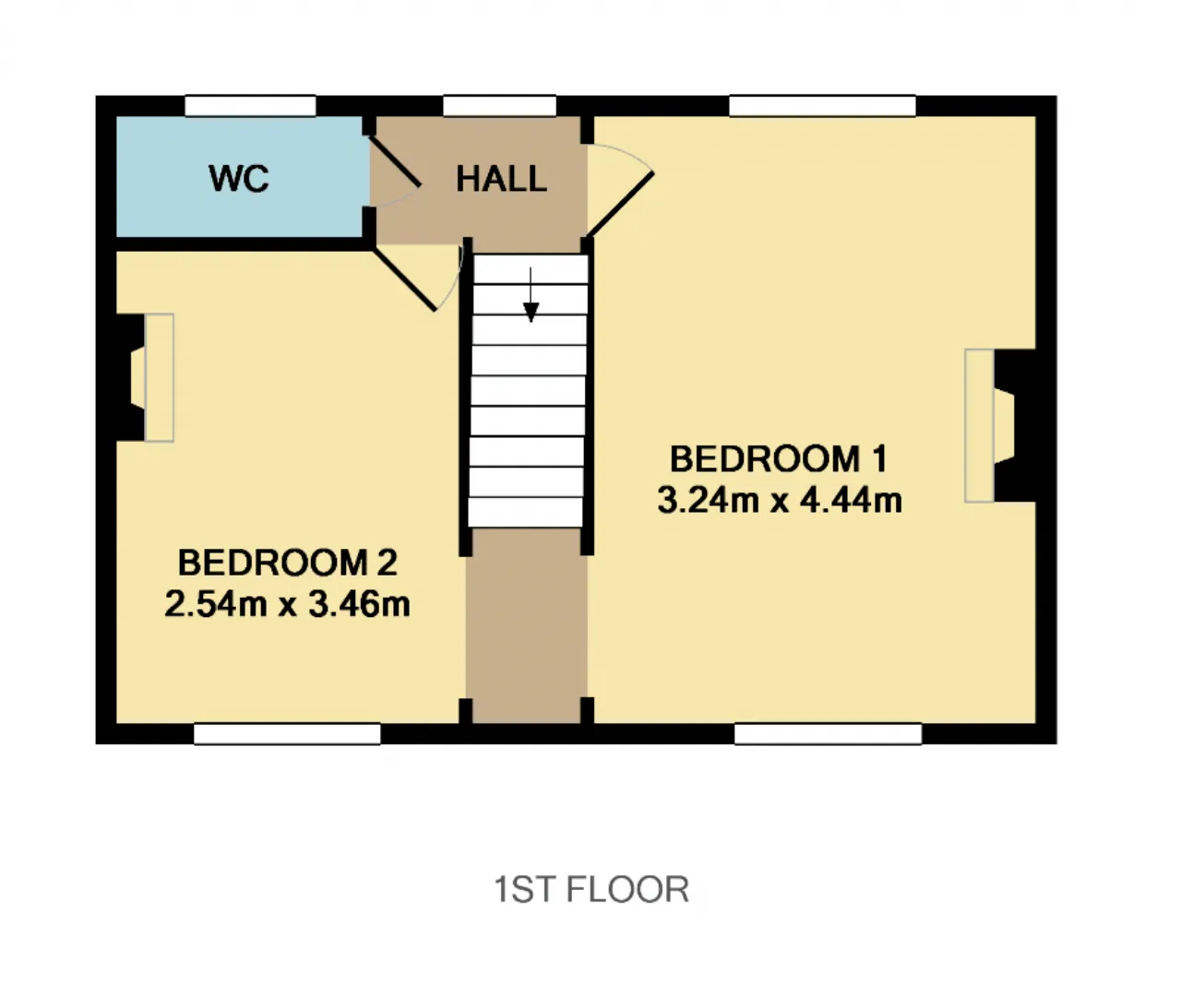 Bedroom 1 3.24m x 4.44m Large double room with wood flooring, duel aspect and open fire