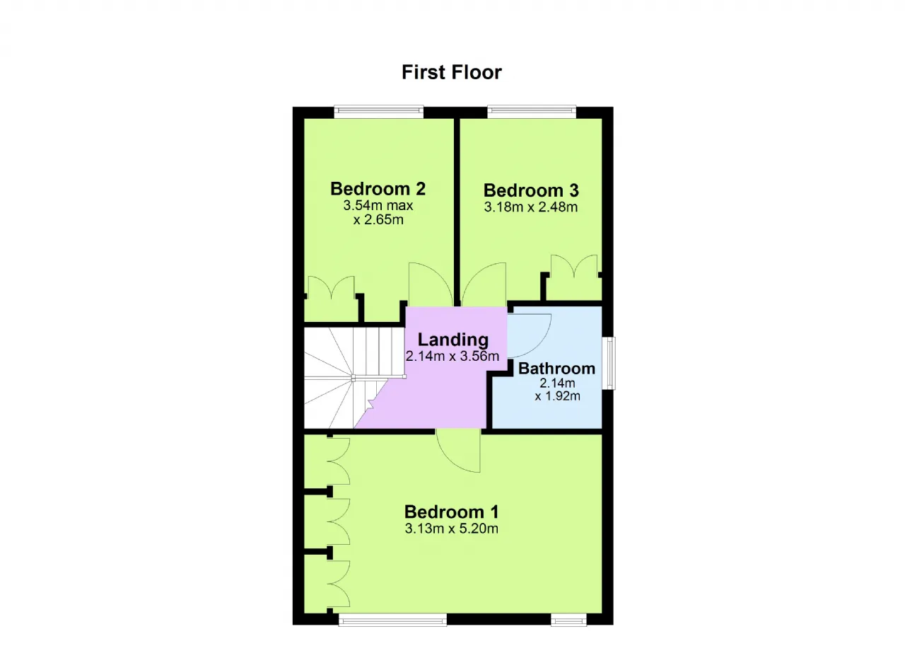 Bedroom 3 3.18m x 2.48m with built-in wardrobes, wash hand basin, and storage cupboard.