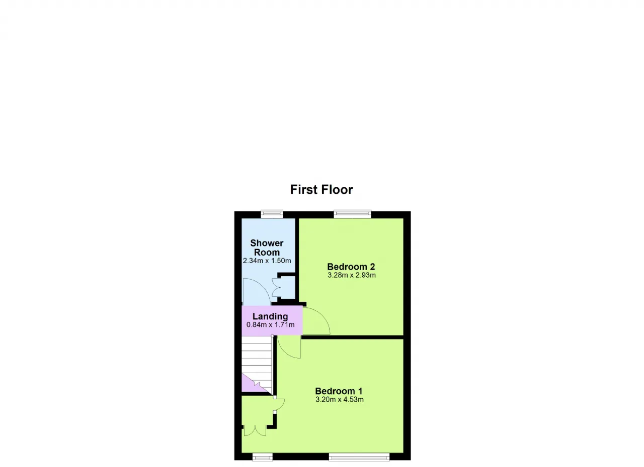 Bedroom 1 3.20m x 4.53m Double bedroom with carpet flooring and built in wardrobe.