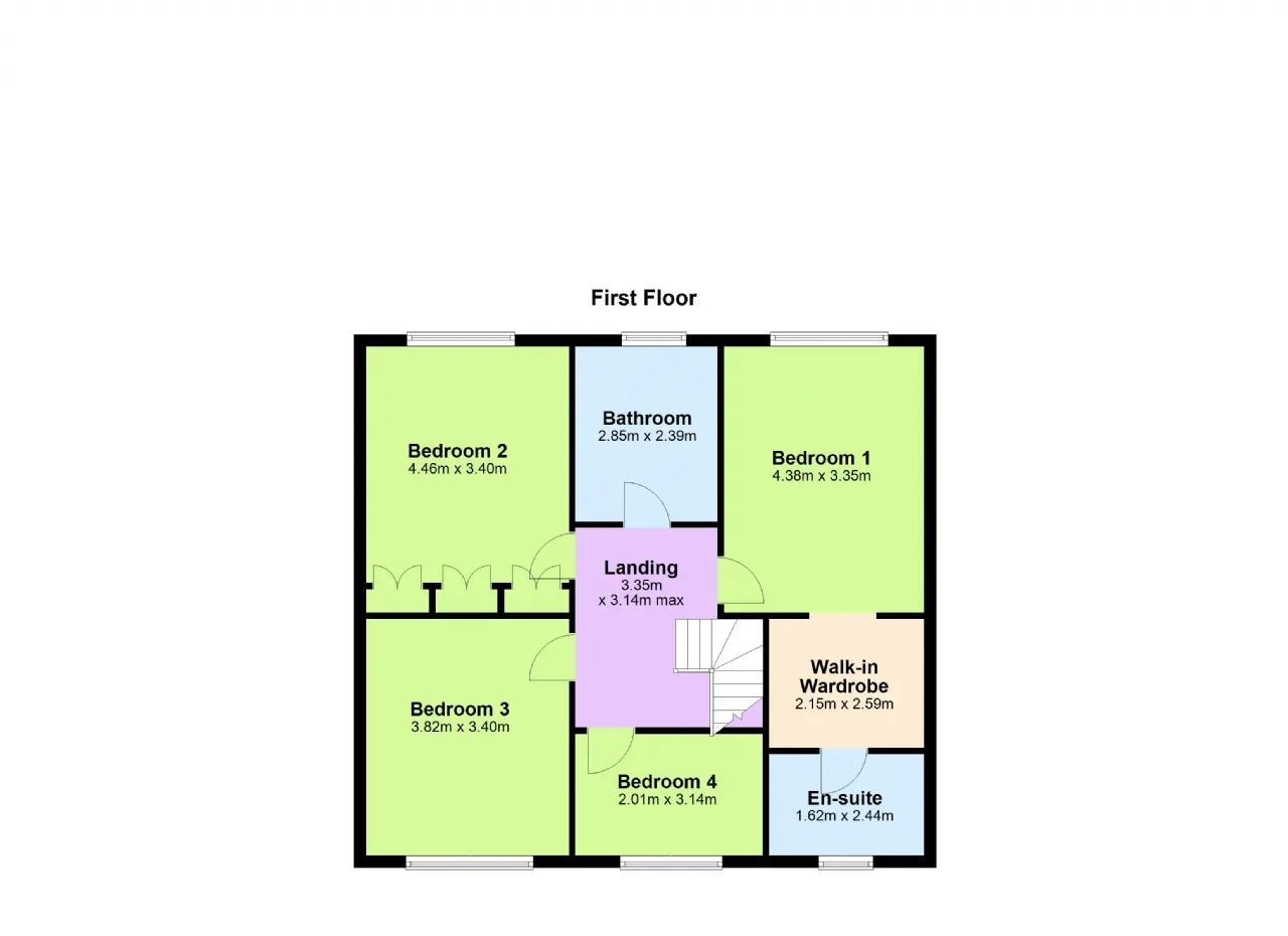 Bedroom 3 3.82m x 3.40m Double room to front with built-in wardrobes.