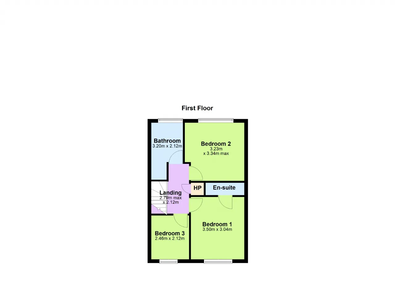 Bedroom 3 2.46m x 2.12m Front-facing, ideal for child’s room or guest use.