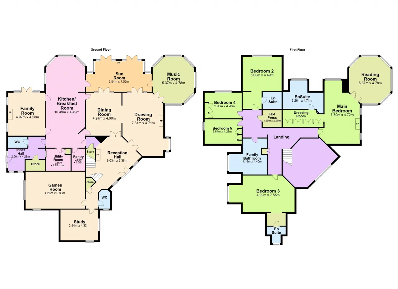 The accommodation extending to 478.51 sqm/5,150 sqft approx. is appointed to the highest specification with underfloor heating, extensive use of solid limed oak joinery, limestone flooring and sandstone contemporary fireplaces to name a few. The attention to detail is exceptional. On entering the hall with vaulted ceiling and copper chandelier, a sandstone fireplace with double height sandstone chimney draws the eye upwards, to the galleried landing with limed oak banisters, setting the tone for what lies within. Externally the slate roof with attractive bargeboards, sash windows, part brick part render finish, combined with a well-appointed two storey octagonal sunroom with cupola to the side creating a tower-like vision providing both light and interest, all combine to make this a most attractive family home.