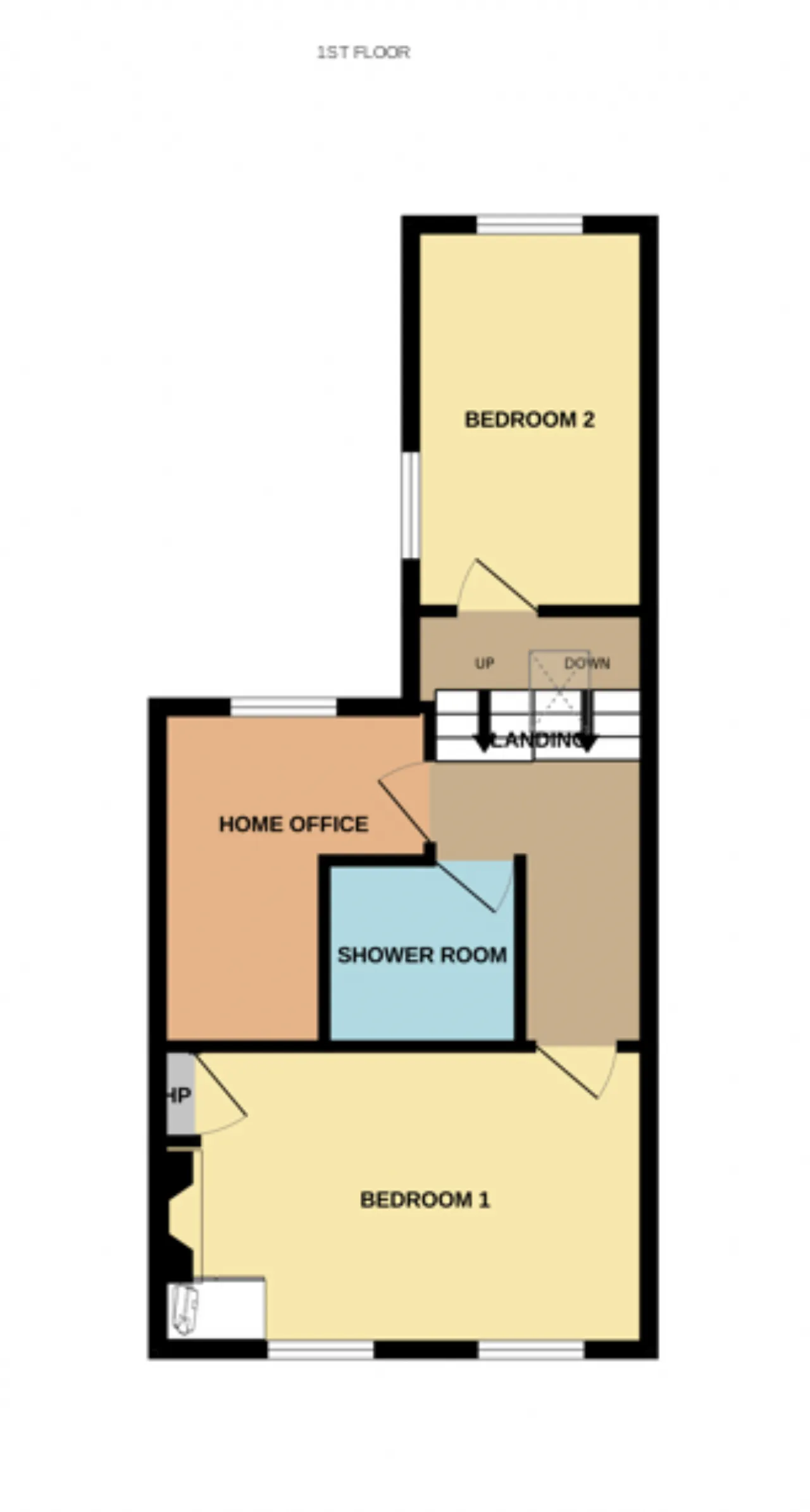 The accommodation briefly comprises a welcoming entrance hall accessed via a porch, a front bedroom with open fireplace, a cosy reception room to the rear, and a dual-aspect kitchen that makes the best use of the property’s sunny orientation. On the return level is the second spacious bedroom. Continuing to the first floor, you’ll find the master bedroom, which spans the width of the property, a home office space, and a shower room that completes the picture of this charming home.