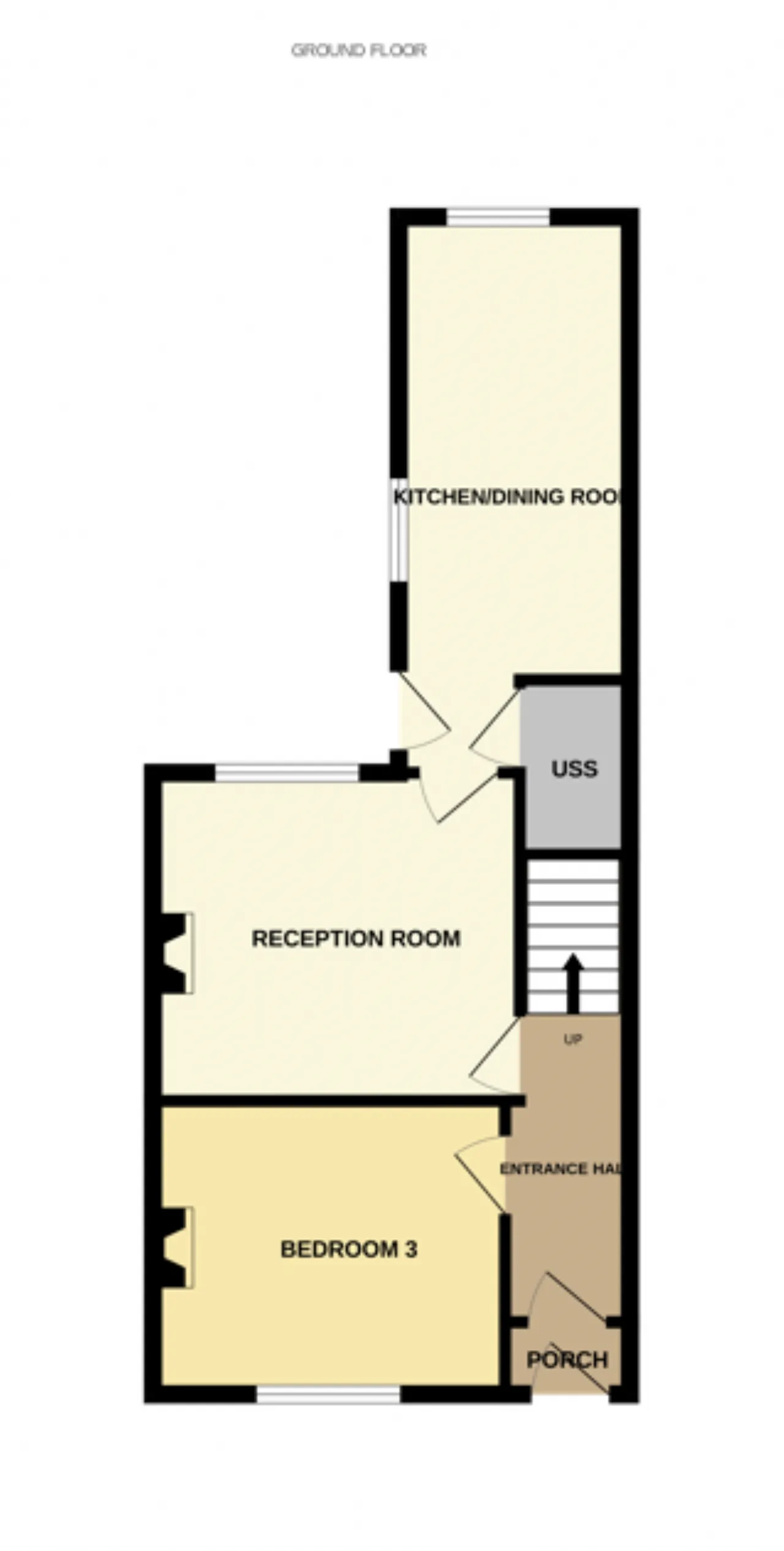 Bedroom 3 3.44m x 2.86m Downstairs bedroom to the front of the property with wood flooring, open fireplace and coving.