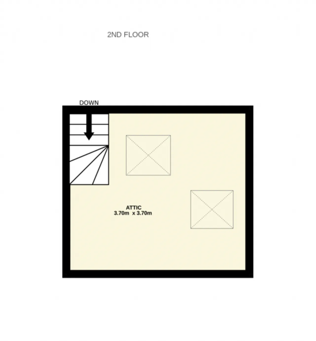 Attic 3.7m x 3.7m A stairs leads from the landing to the converted attic which has two skylights offering views across the treetops. There is a great amount of fitted storage in the eaves.