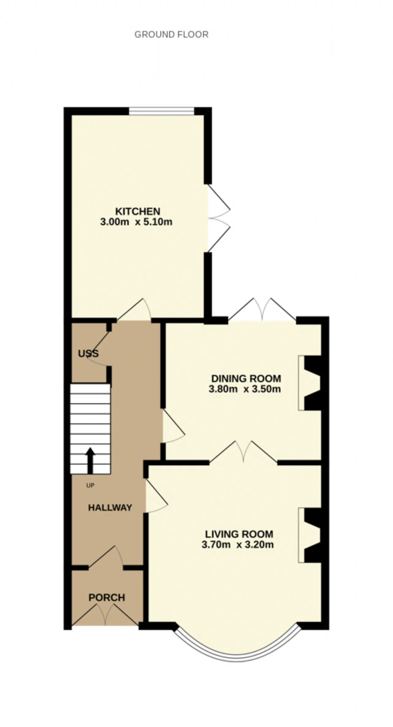 Living Room 3.7m x 3.2m A beautifully decorated reception room to the front with bow window allowing plenty of light into the room. The original fireplace has been fitted with a wood burning stove and original features include picture rails, ceiling covings and ceiling rose. Pocket doors lead to the dining room.