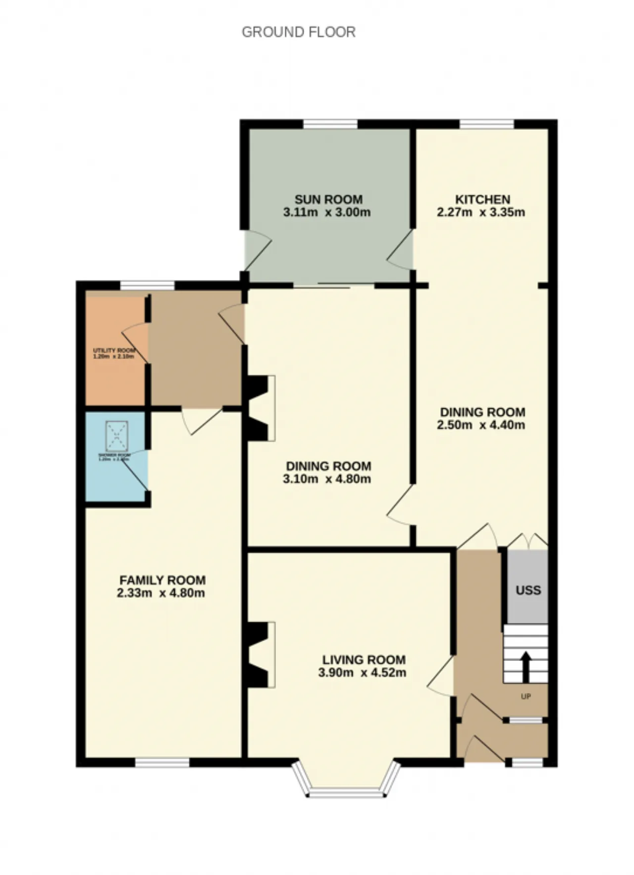 The accommodation comprises porch, hallway, living room, kitchen/dining room, dining room, family room, shower room, utility room, sun lounge, and three generous sized bedrooms upstairs along with the main family bathroom.