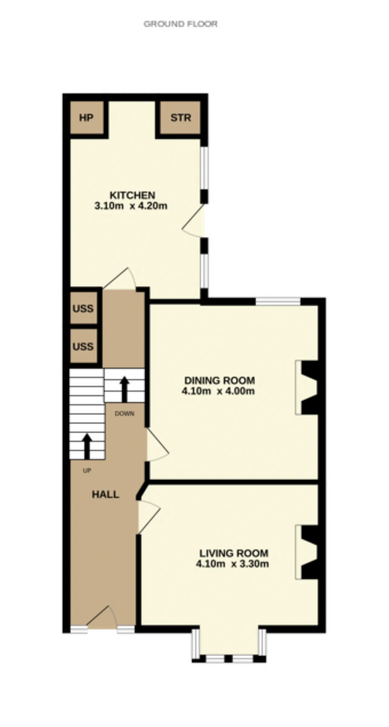 Bedroom 2 3.5m x 3.3m Double bedroom positioned to the front of the property, enjoying a south-facing aspect and featuring an original fireplace.