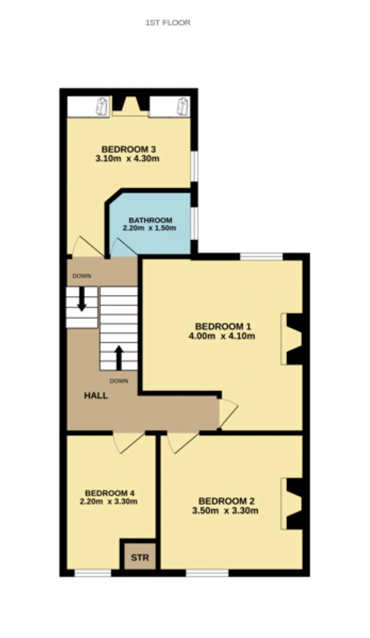 Bedroom 3 2.20m x 3.30m Single bedroom positioned at the front of the property, with a built-in storage cupboard.