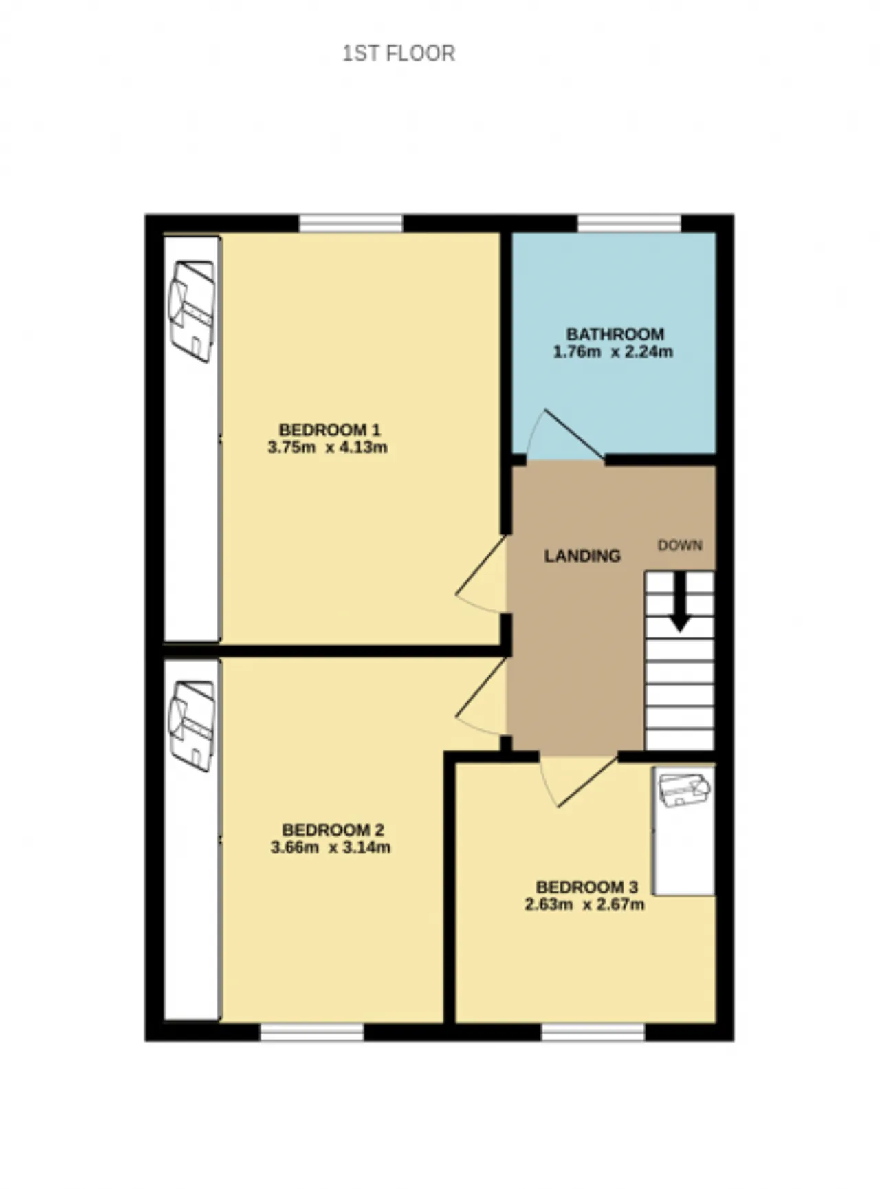 Bedroom 1 4.132m x 3.758m Double room to the front of the house with Built in wardrobe