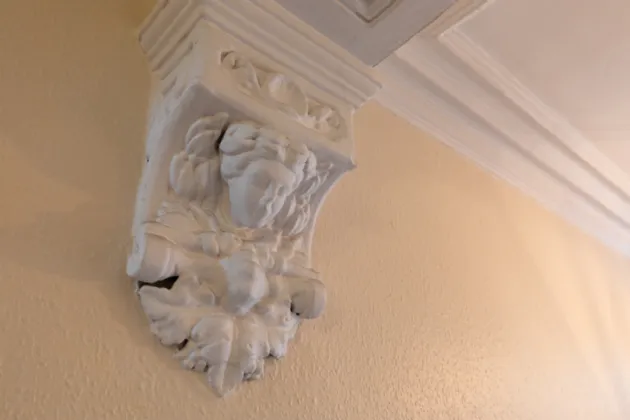 Living Room 4.8m x 4.2m This is a very spacious reception room to the front with a bay window flooding the room with light. Many of the original features remain such as an impressive marble fireplace with tiled inset, polished wooden floor, ceiling covings and ceiling rose.