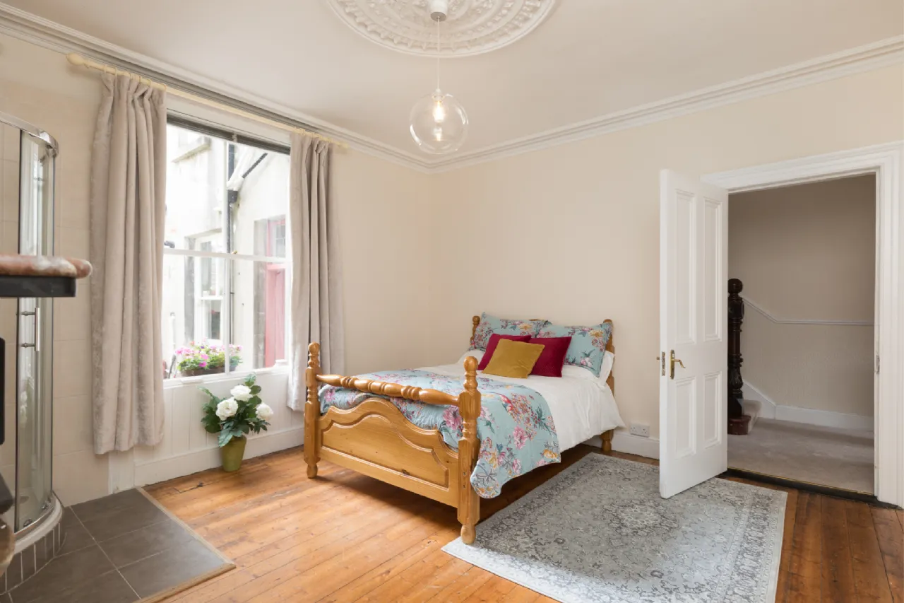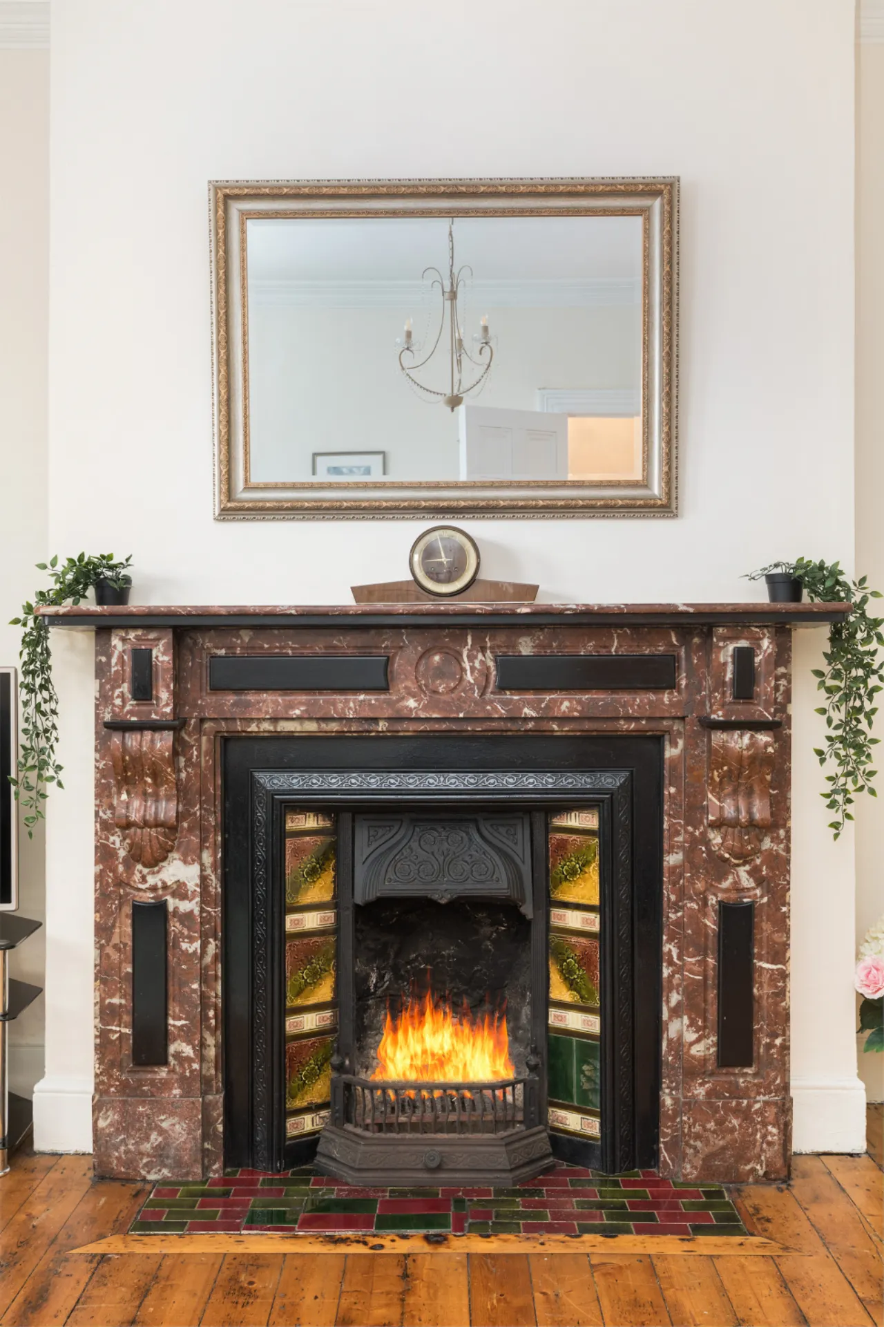 Bedroom 1 4.3m x 4.2m Very spacious double room to the rear with fitted wardrobes. Original features include cast iron fireplace, ceiling covings and picture rails.