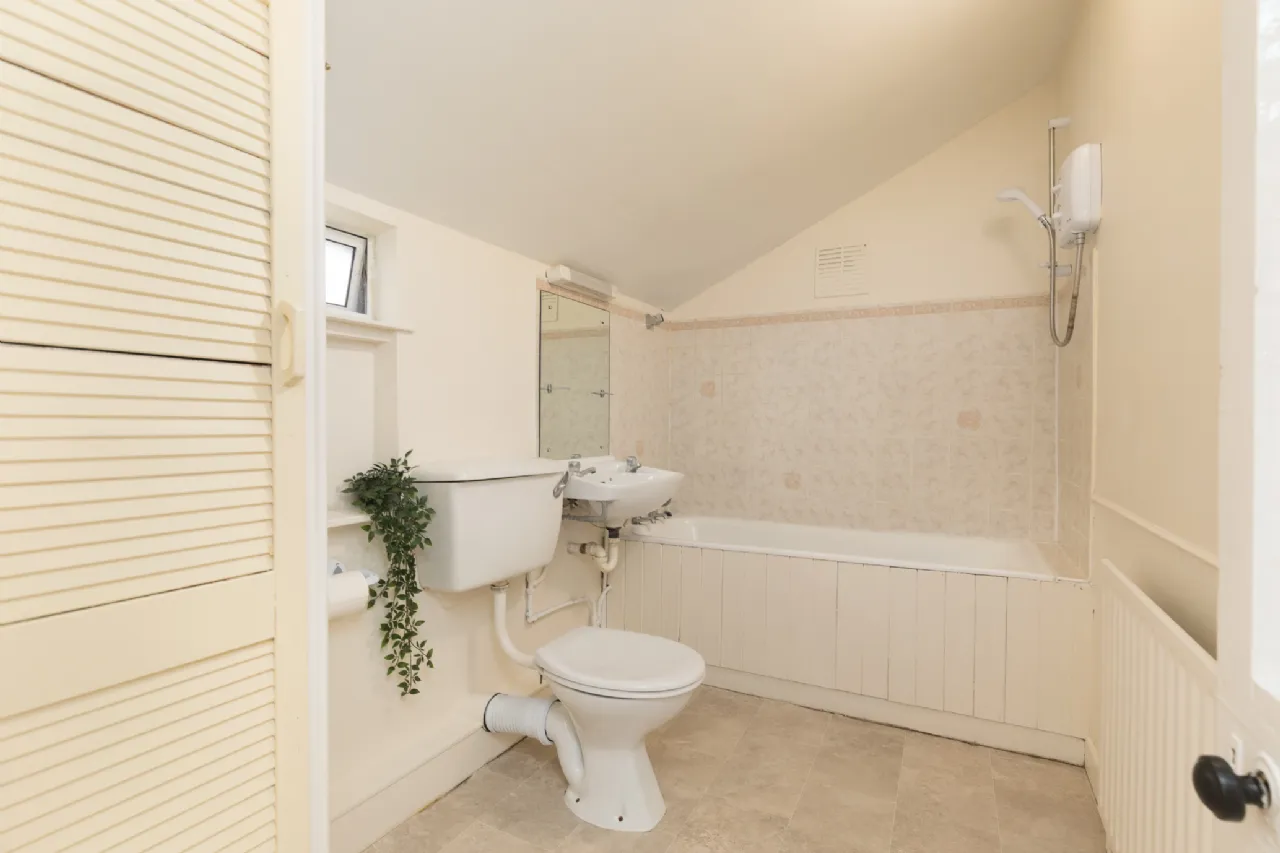 Shower Room 2.5m x 2.3m Fully tiled with suite comprising w.c, wash hand basin with fitted storage and shower cubicle with Triton shower.