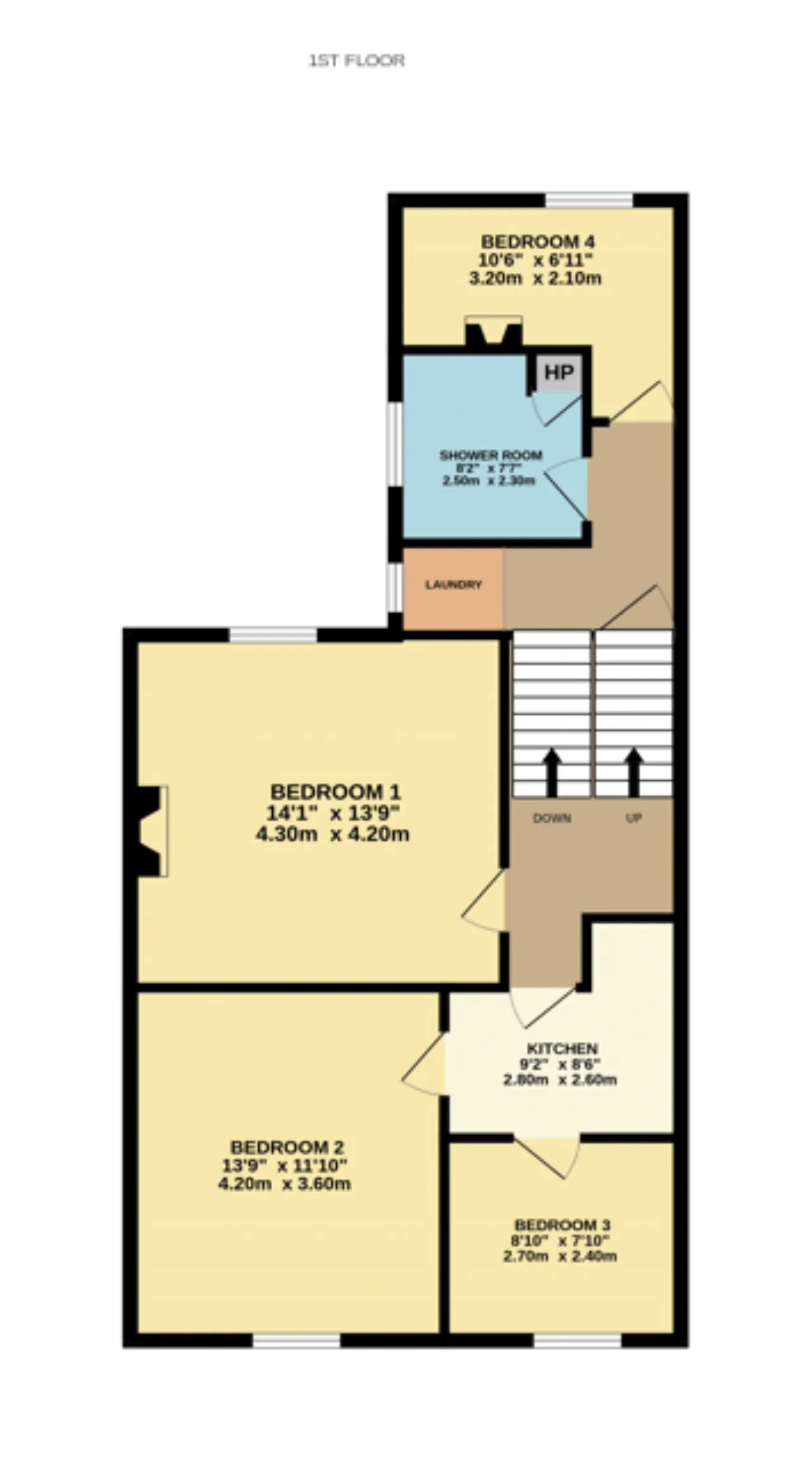 Bedroom 4 3.2m x 2.1m Single room on the return with cast iron fireplace.