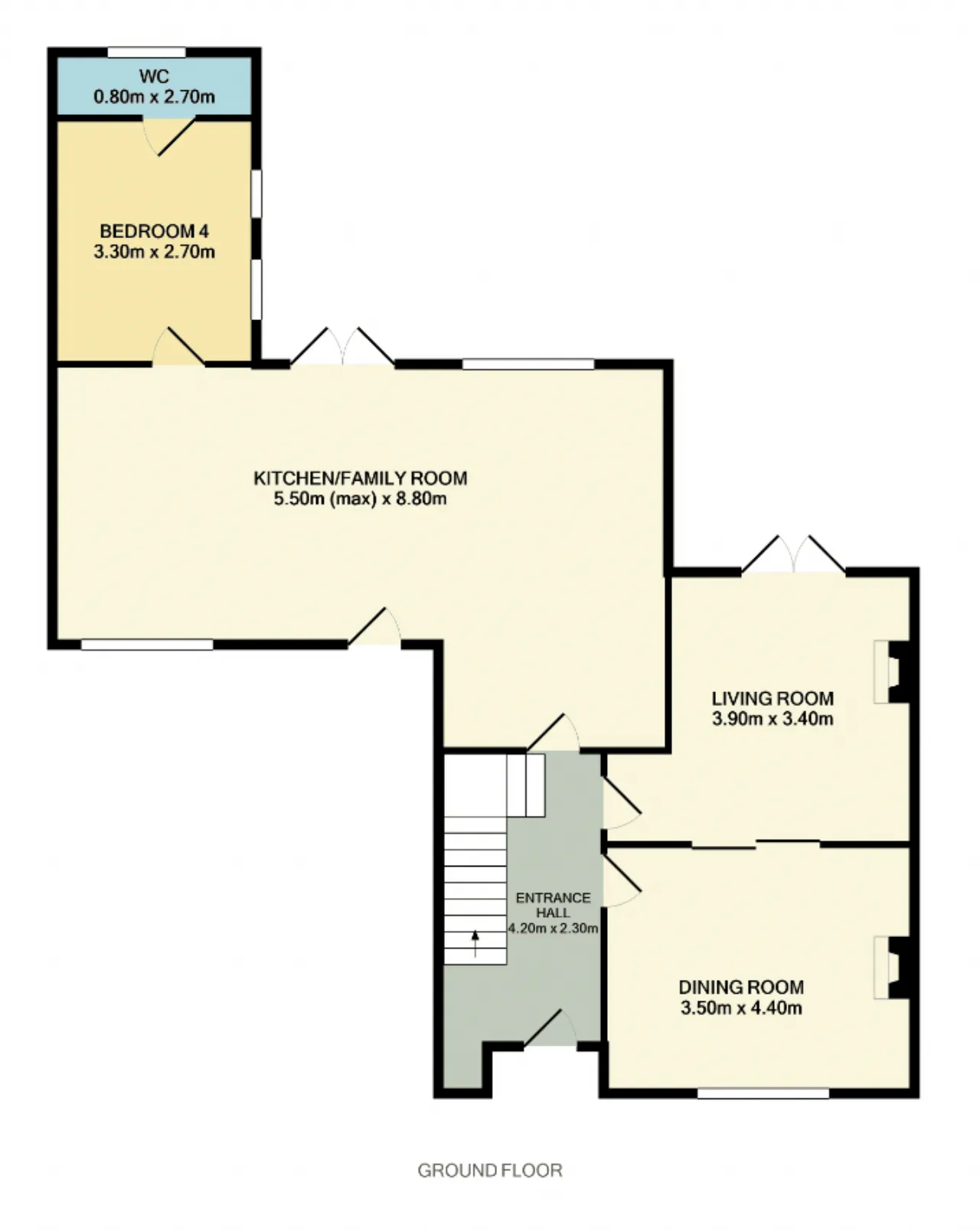 Bedroom 4: 3.30m x 2.70m Located on the ground floor, with attic hatch and TV point.