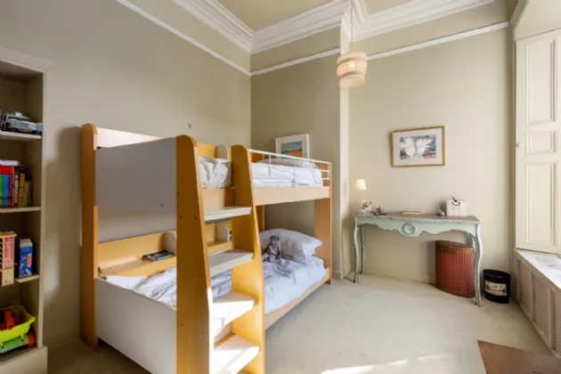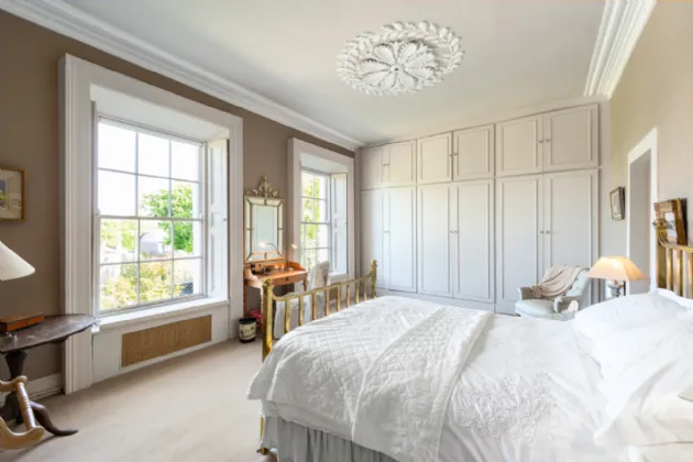 Bedroom 5 2.70m x 2.92m Large sash window with working shutters overlooking the front garden, ceiling coving, stripped and polished timber floor.